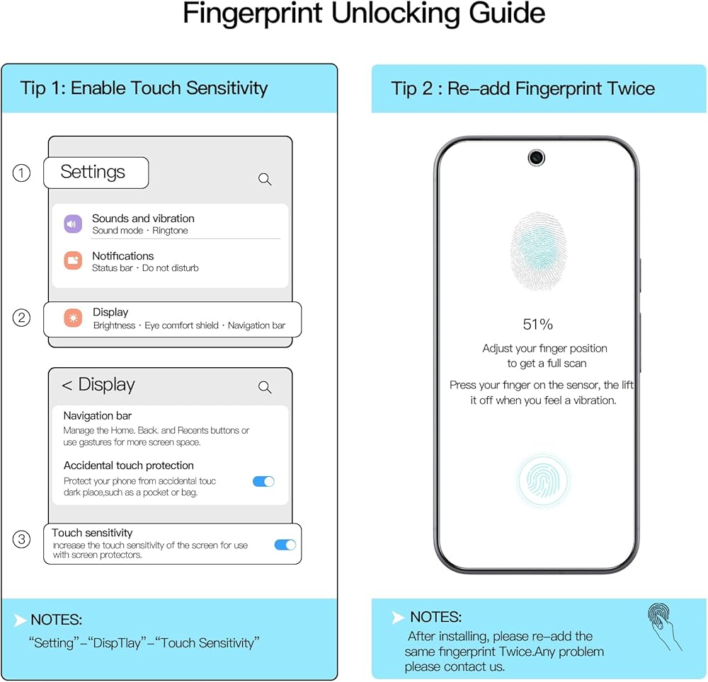 [99.99% HD Transparent & Touch Sensitivity] Screen protector glass shield made of 0.33 mm tempered glass,high-response haptic touch technology gives a "True Touch" feel, maintaining 99.99% response sensitivity and touch.High definition transparency film and maximum resolution which keeps the bright and colorful image quality,support ultrasonic fingerprint and compatible with Face Recognition. Natbok glass protection will bringing you a new perfect touch experience.