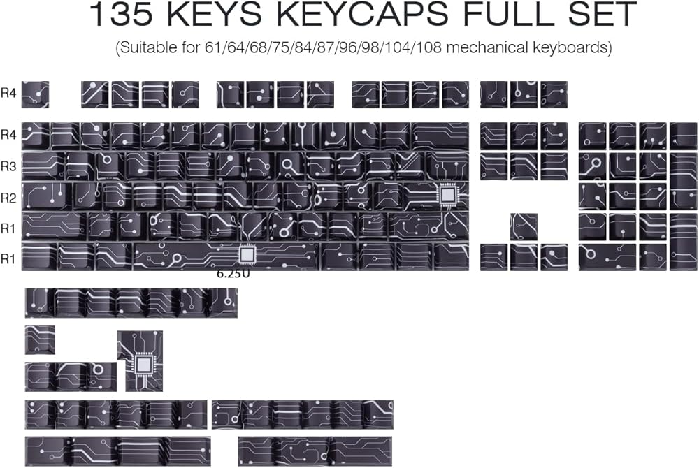 【Keycap Set】:This keycap set includes 128 keys with a 6.25u spacebar and 1 keycap puller, fit most 60%/65%/75%/80%/96%/100% (61/64/68/75/84/87/96/104/108) US layout mechanical keyboard