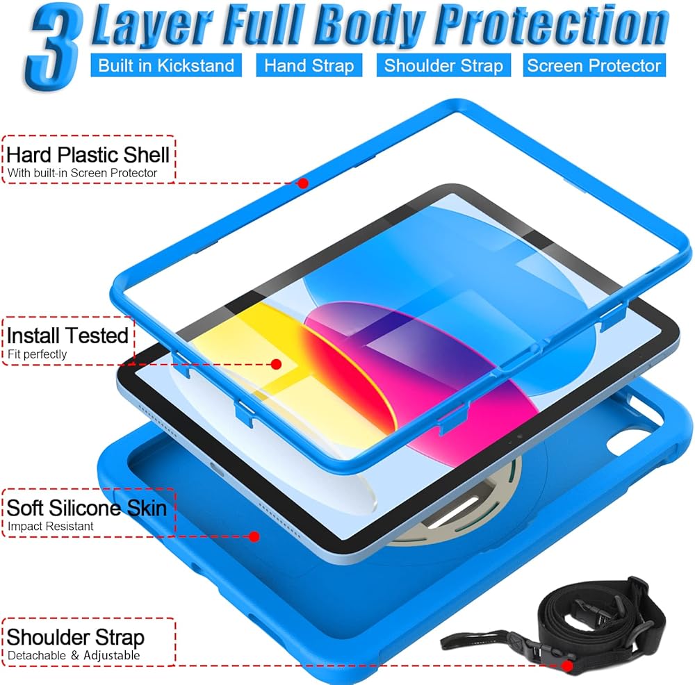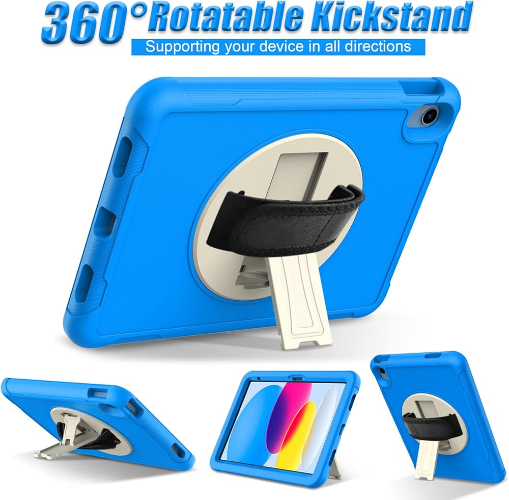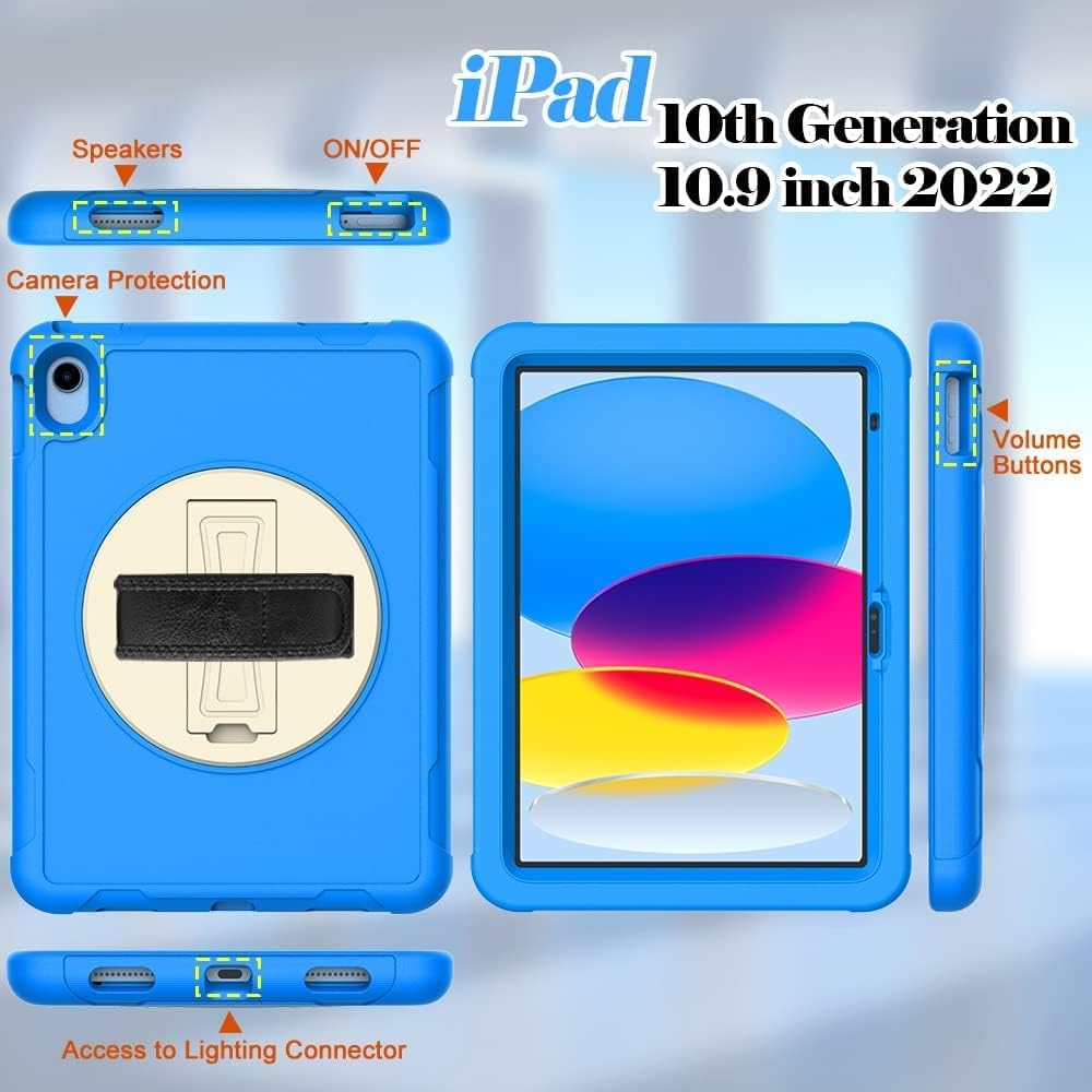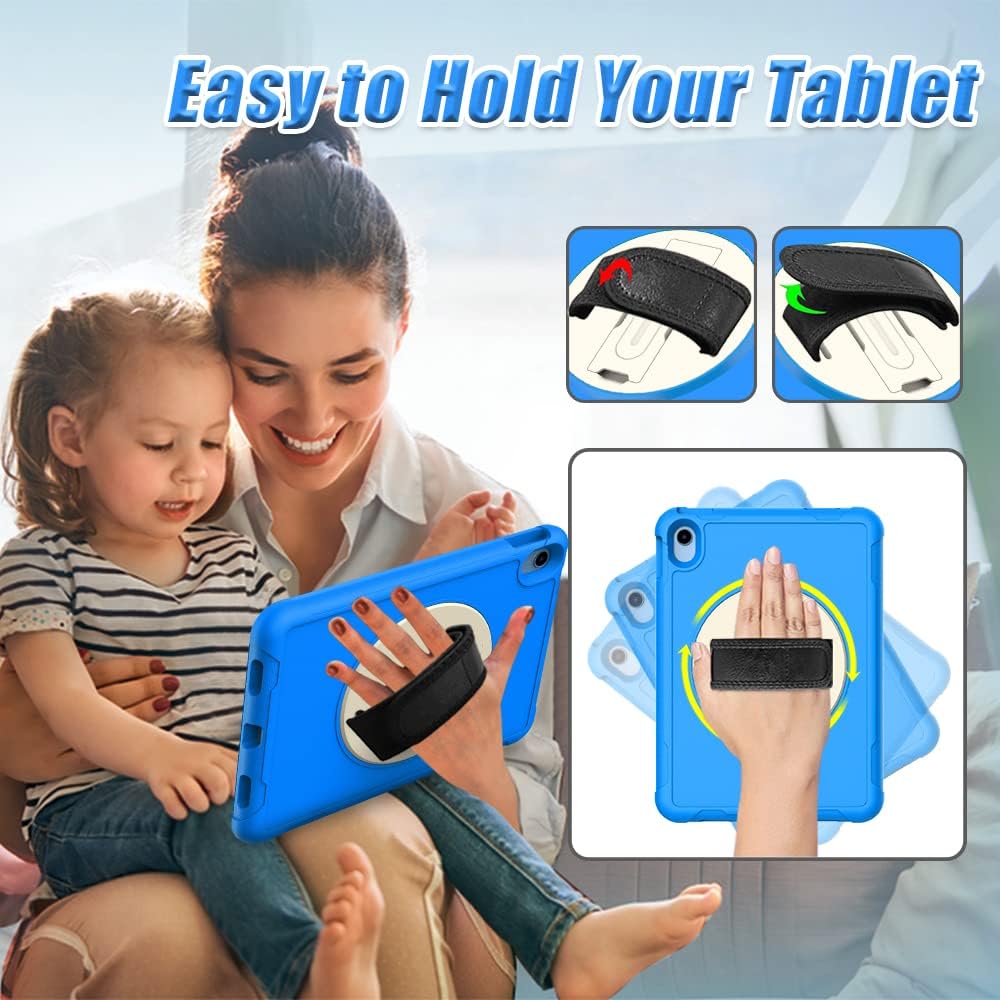 ➤【360° Rotatable Hand Strap】iPad 10th Generation Case 2022, Built-in 360° rotatable and adjustable handle hand strap can provide a more convenient and comfortable way to use your iPad 10th Gen.