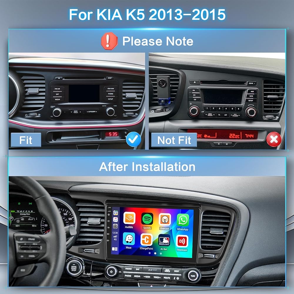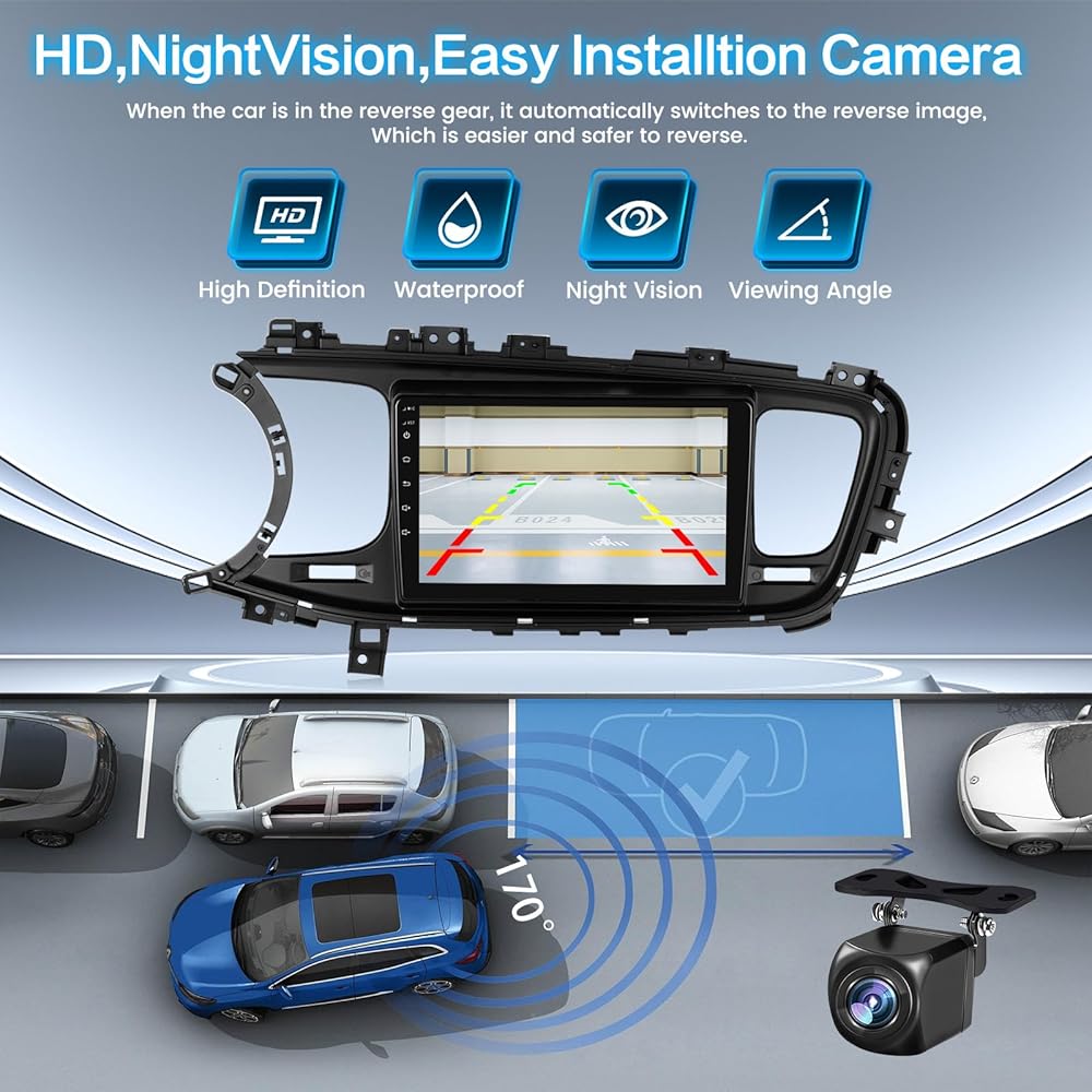 Upgrade Android 13 Car Radio for Kia Optima K5: This carplay radio for kia optima equipped with a 9-inch 1080P HD screen providing a comfortable viewing experience. 1280*720 ultra-high resolution supports ultra clear video. It runs smoothly with the latest Android 13, Octa-core and 4GB RAM + 64GB ROM. Compatible with kia optima k5 2013 2014 2015