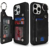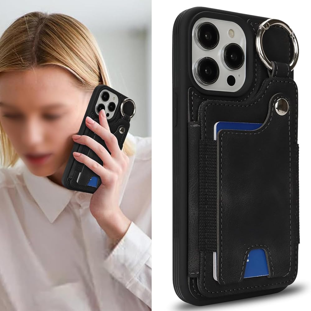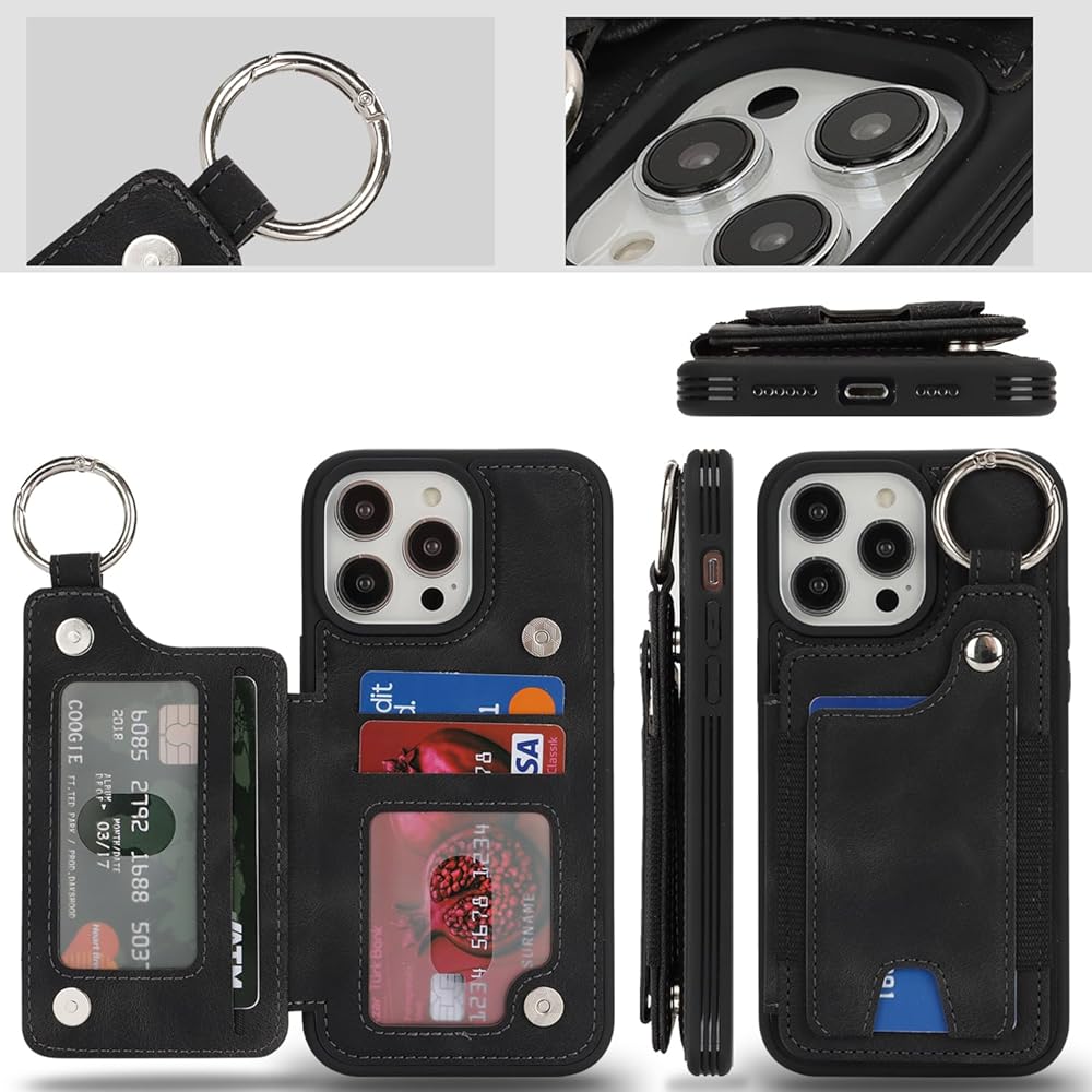 Case for iPhone 12 Pro Max Phone Case with Keychain Ring Credit Card Holder for Women, for iPhone 12 Pro Max Leather Case Wallet with Kickstand Card Slots Fashionable Case for Men- Black