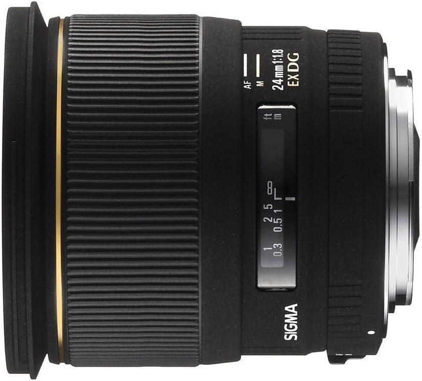 Sigma's 24mm F1.8 EX DG Aspherical Macro lens is a large aperture wide angle lens giving photographers freedom of expression with the ability to set the desired aperture and get as close as 7.1 inches allowing the photographer the juxtaposition between near and backgrounds in the distance. The 84 angle of view is perfect for landscape photos while also great for shooting group shots without distorting the subjects at the edge of the frame and compact enough for working in tight quarter with a single subject. This lens is perfect for photo journalists where it is essential to have a fast, wide angle lens, scenic, social and full-time professional photographers who are in need of a hardworking lens. Extremely compact within the category of super fast wide-angle lenses and totally affordable for the professional as well as aspiring professional and student photographers! Features Extremely compact with a length of 3.36 inches and a weight of a little over one pound A lens hood, front/rear lens cap and carrying case are included with the lensSpecifications Lens Construction - 10 Elements in 9 Groups Angle of View - 84.1 Number of Diaphragm Blades - 9 Minimum Aperture - f22 Minimum Focusing Distance - 18 cm / 7.1 in. Filter Size (mm) - 77mm Maximum Magnifications - 1 - 2.7 Corresponding Mounts - Nikon (ASP, EX, DG, D) Dimensions (Diameter x Length) - 83 x 80 mm / 3.3 x 3.1 in. Extended Dimensions - 85 mm / 3.3 in. Weight - 485 g / 17.1 oz.