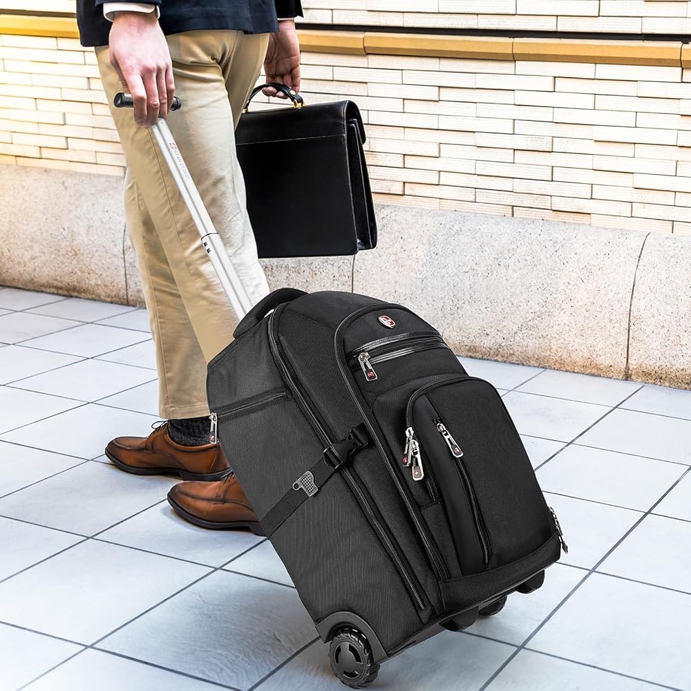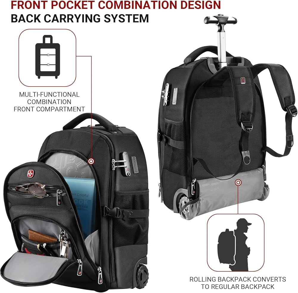 Rolling Backpack with Wheels, USB & Type-C Charging Ports, 21x14x9, Water-Resistant, 17.3" Laptop Compartment, EVA Material, Built-In Customs Lock – Wheeled Business Backpack for Travel, Work, College