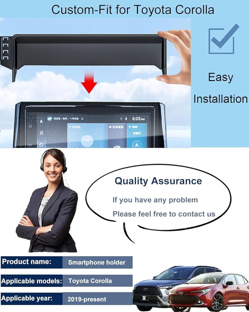 Toyota Corolla Accessories: custom fit for 2019-2024 Toyota corolla/2022-2024 Corolla Cross with 8-inch touchscreen Note: Please check the shape of the mounting position in the photo before ordering