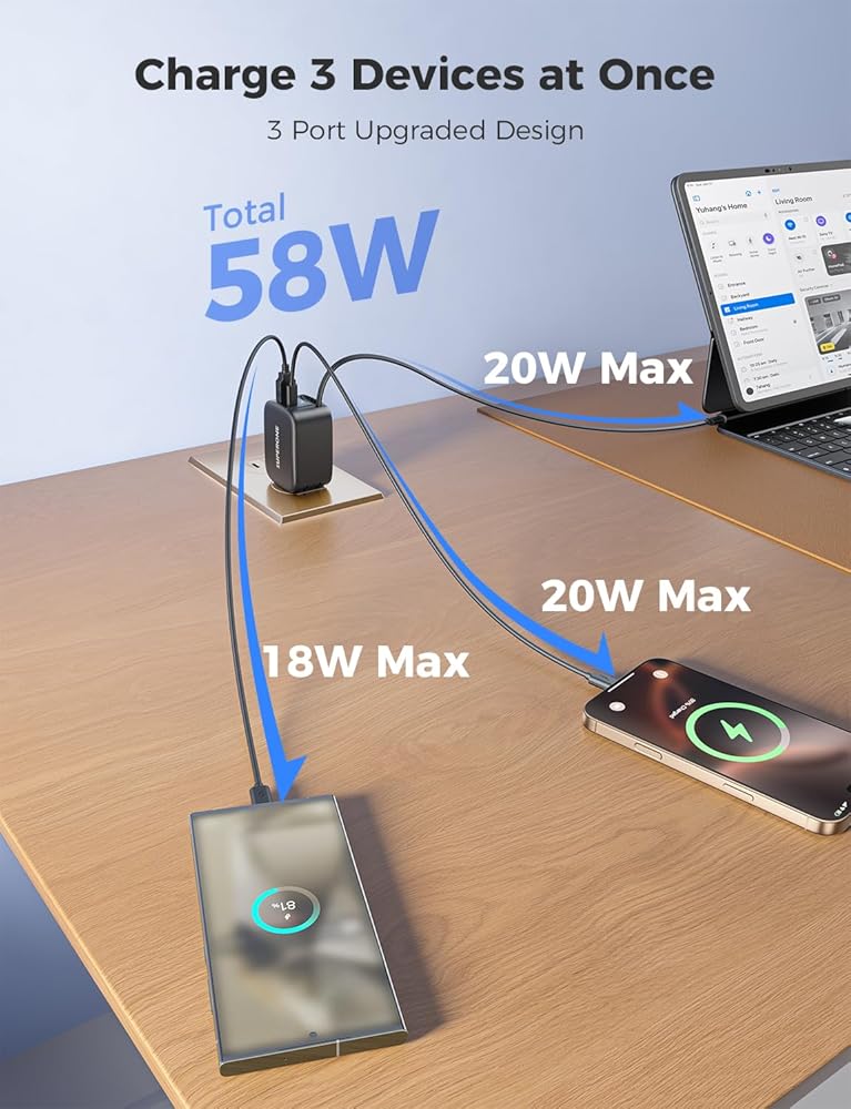 🍃[Multiple Security Protections] The retractable charger features advanced GaN6 technology, a built-in multi-protection system, and high-quality microchips. GaN6 components reduce power loss and heat generation, improving heat dissipation by up to 30% for more efficient charging. With comprehensive protections including overcurrent, overvoltage, overload, and short-circuit safeguards, your devices are protected, ensuring smooth performance and extending battery life by up to 25%.