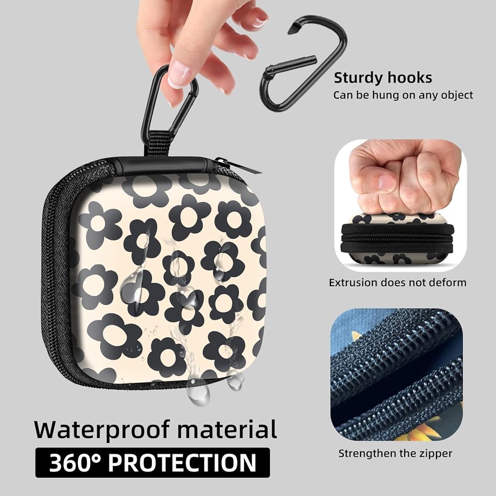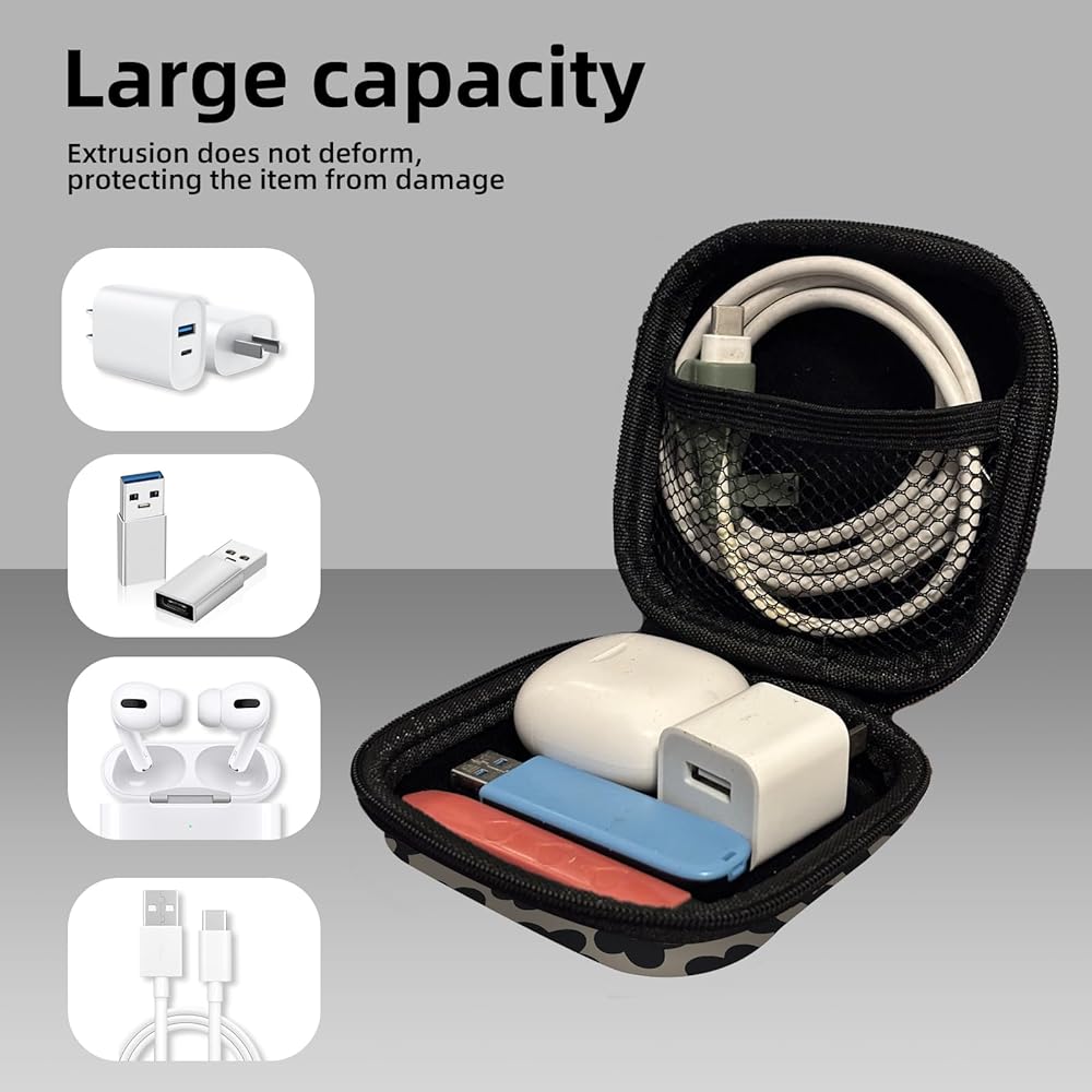WIDELY APPLICABLE The included storage bag can be used to store accessories AirPods 4 Airpods Pro 2 Beats Bose Galaxy Buds 3such as chargers, earbuds, change, keys, candy, and more..Stylish and personalized design made of EVA material, anti-fall, shockproof and waterproof, with a variety of beautiful patterns to meet diversified needs ..The internal mesh bag can conveniently store data cables, memory cards, etc. for easy access.Equipped with a carabiner design, it is easy to carry and can be hung on bags, clothes, mobile phone lanyards, etc. attached to items..Larger capacity 4*4*1.5in size can Together store wireless earbuds, chargers, data cables, etc.