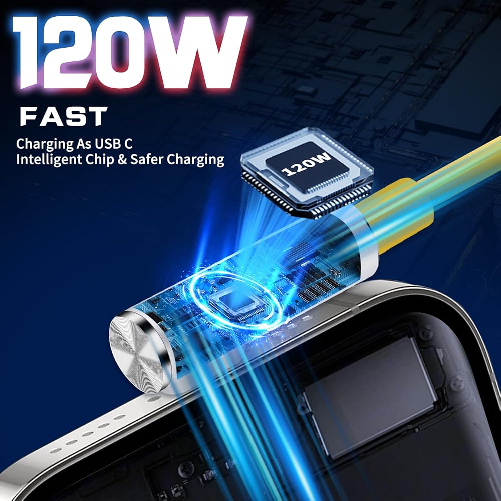 Fast Sync: USB C cable fast charging supports fast charging up to 120W and data transfer speeds up to 480Mbps, allowing you to easily transfer, synchronize and charge files, saving time and making life more efficient.
