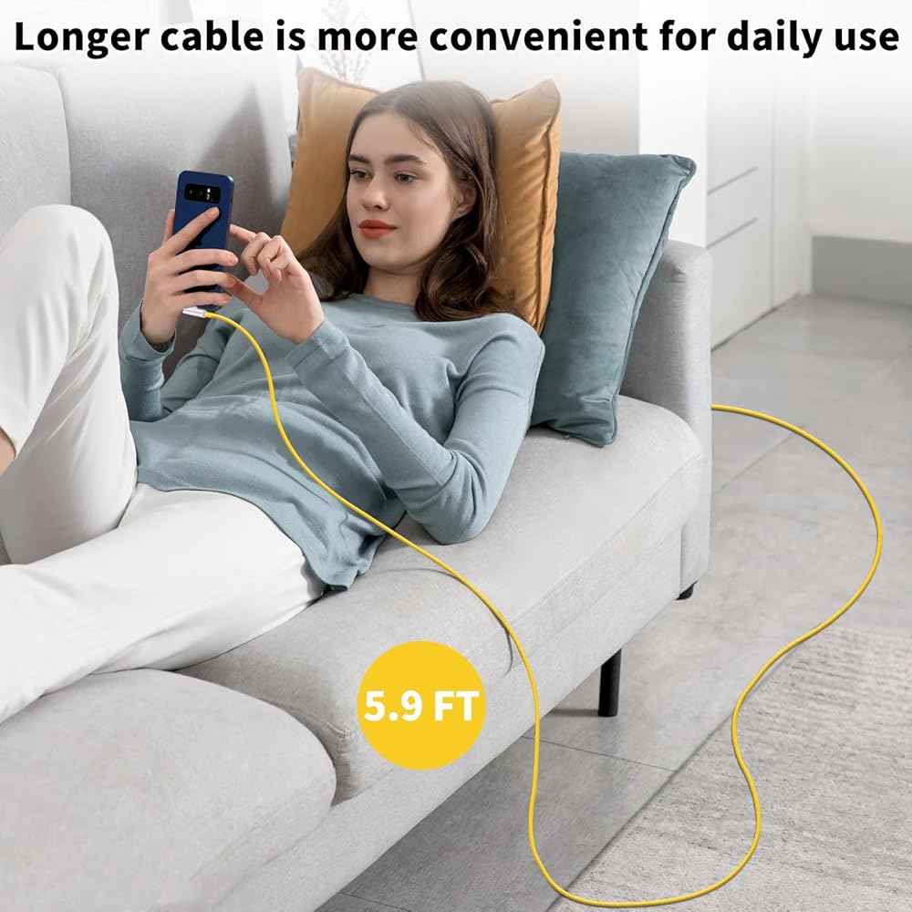 Flexible and Durable USB C Cable: The usb to usb c cable made with high-quality TPE material and solid connector with the features of great durability and flexibility, fitting your device snugly. 5.9FT Length Cable is perfect for travel, office, cars, at home, more ideal length cable in your daily life.