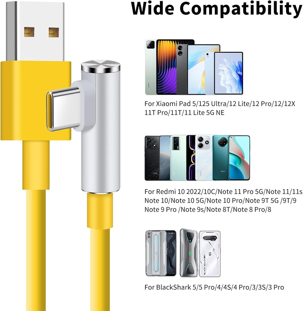 Coolden USB C Cable 120W HyperCharge Turbo Type C Charger Fast Charging Cord Right Angle USB to USB C Cable for Xiaomi 14 13 12 Pro Lite Redmi Note K70 K60 K50 Ultra 12 11T Plus Black Shark 5 Poco X5