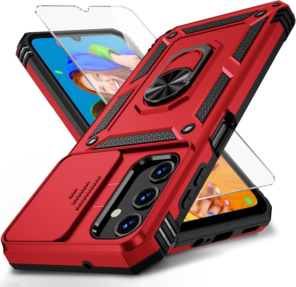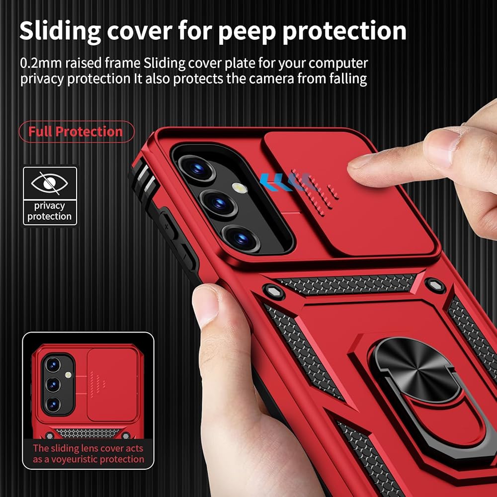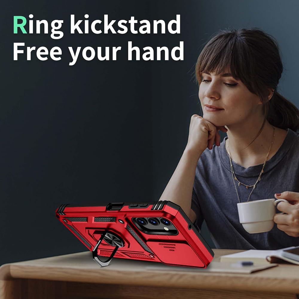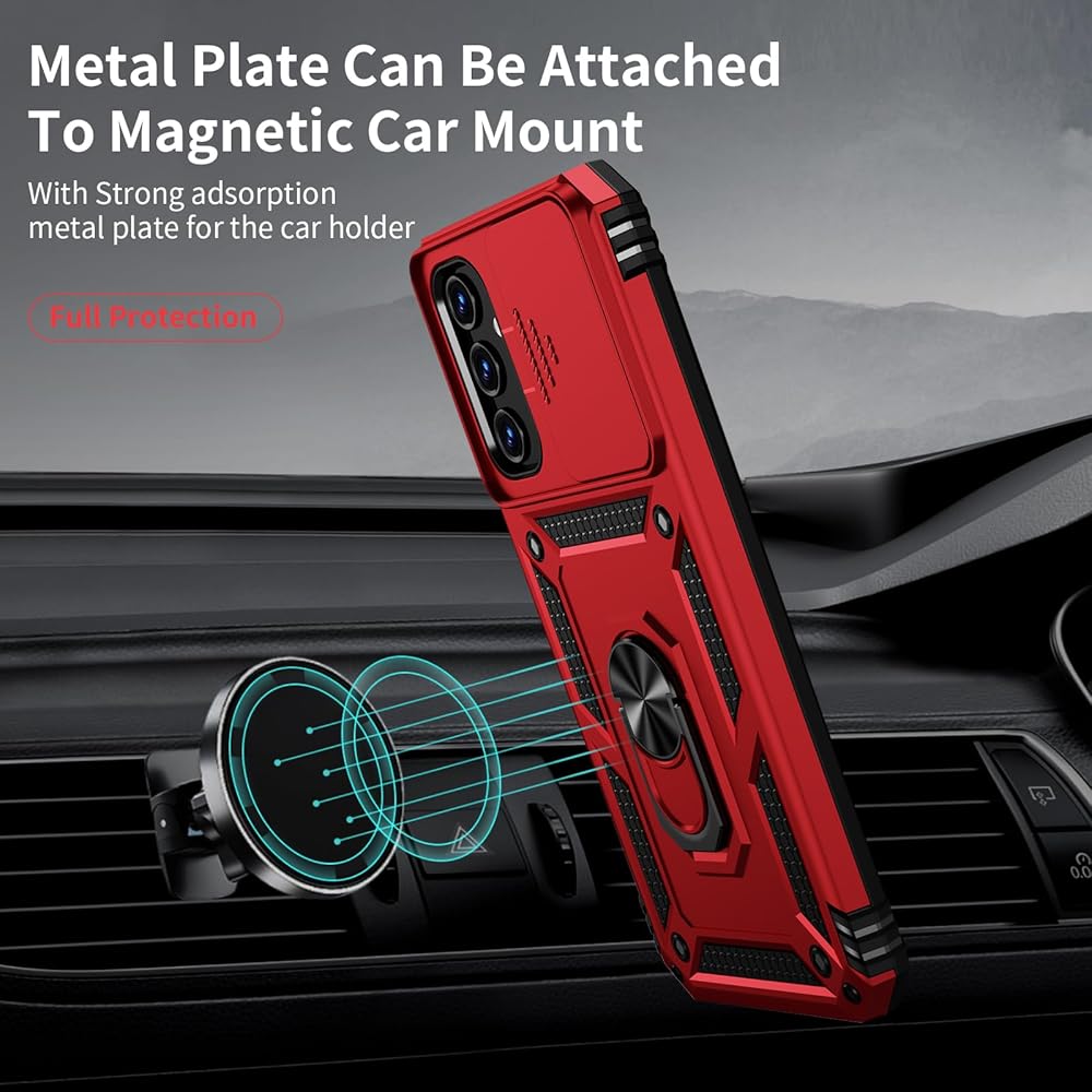 ✌️【Durable and Precise Phone Case】 Armor Case with sliding camera cover is specially designed for Samsung Galaxy A25 5G📱 .The precise cutouts precisely fit each button, camera, speaker and port, making them easy to press and access. ⚠️ Please note: The metal ring on the back of this case renders it incompatible with wireless charging.