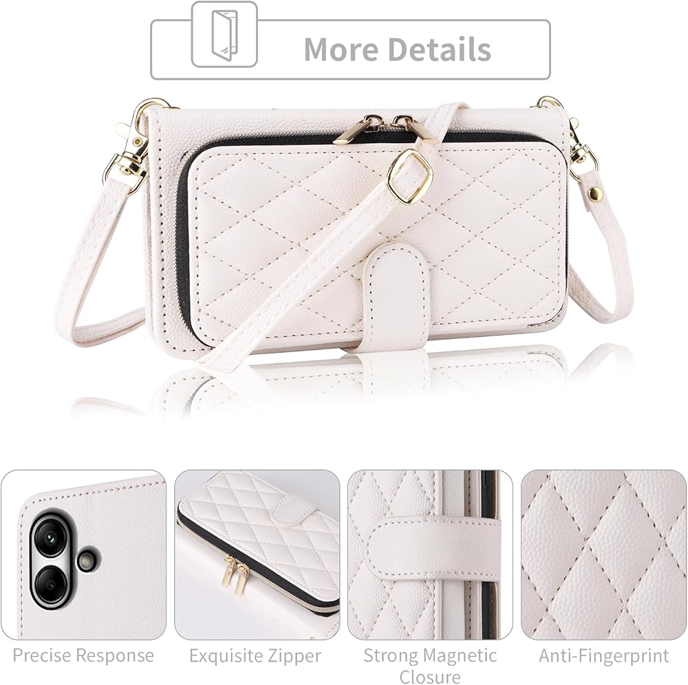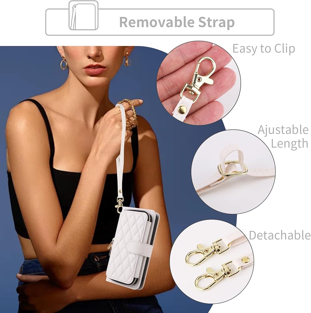 【Detachable Strap & Exquisite Zipper】: Wrist Strap & Crossbody Shoulder Strap keep your Phone around without losing and the Exquisite Zipper will keep all your belongings safely in place.