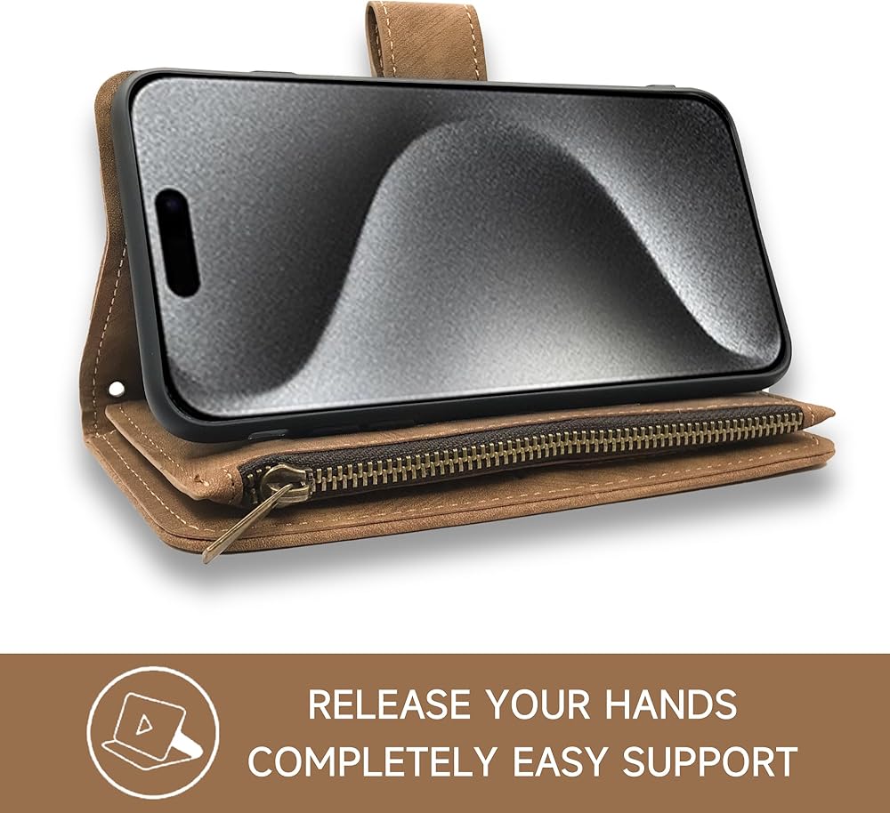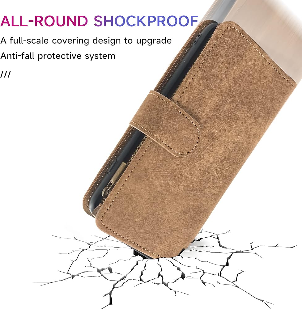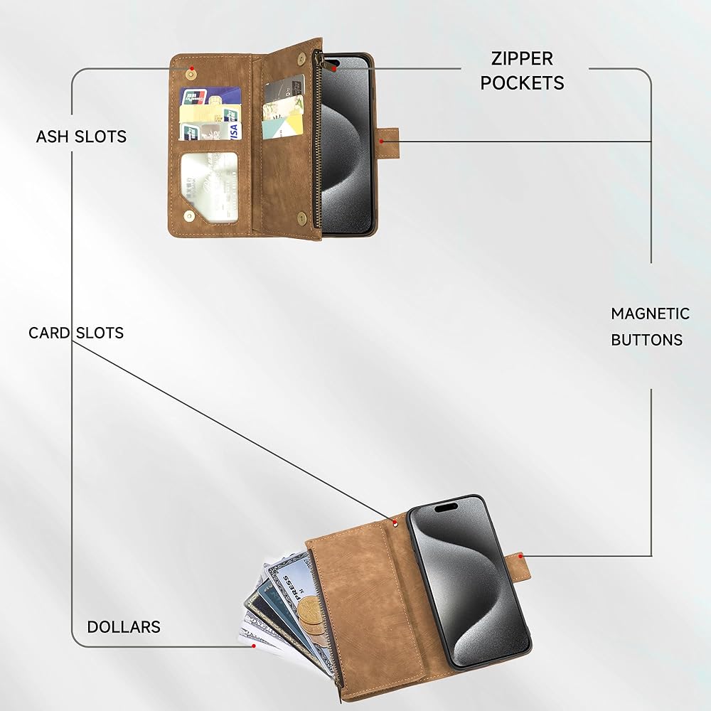【CARD SLOTS AND VIEWING STAND】: This wallet case includes 5 standard card slots + 1 ID card slot + 1 cash slot + 1 zipper wallet pocket, which you can carry your ID/credit/debit cards, driver license, several cash and small notes without taking bulky wallet. The hands-free viewing stand design allows your phone stand independently, perfects for video-chatting and movie-watching.