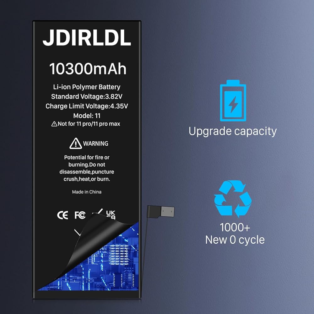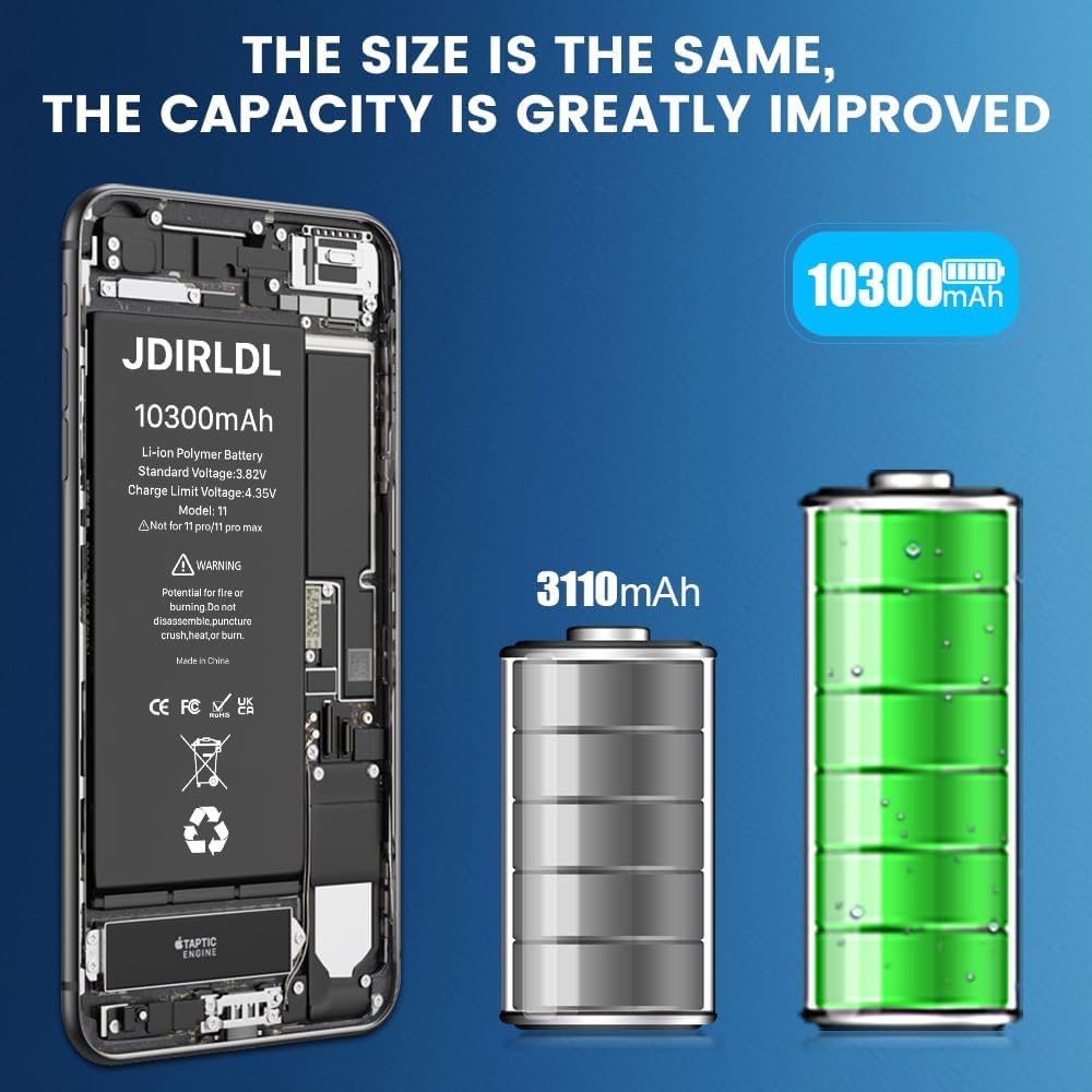 [10300mAh] Battery for iPhone 11, New Upgrade Ultra High Capacity Replacement 0 Cycle Battery for iPhone 11 A2111, A2221, A2223 with Complete Repair Tool Kit and Instructions