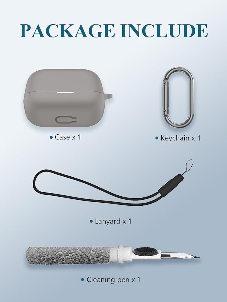 Warm Tips: Package include 1 x Silicone Case, 1 x Keychain/Carabiner,1 x Cleaning pen,1 x Lanyard(NOT INCLUDE EARBUDS). We take care of all quality-related issues with a REPLACEMENT, so if you have any problem, please contact us without hesitation.