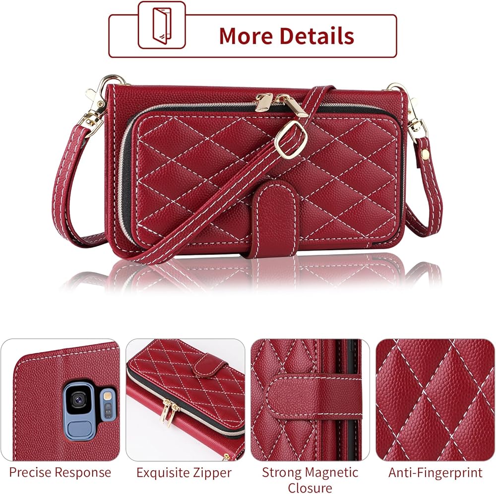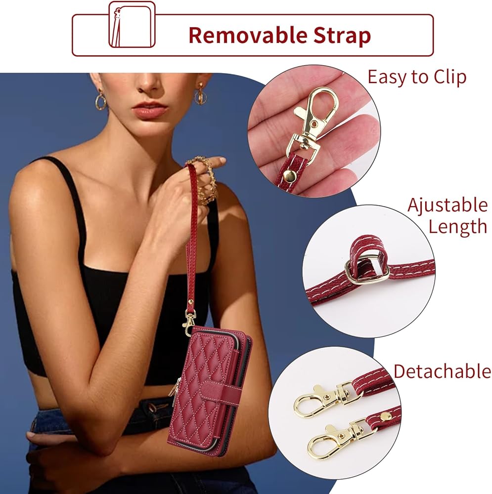 【Detachable Strap & Exquisite Zipper】: Wrist Strap & Crossbody Shoulder Strap keep your Phone around without losing and the Exquisite Zipper will keep all your belongings safely in place.