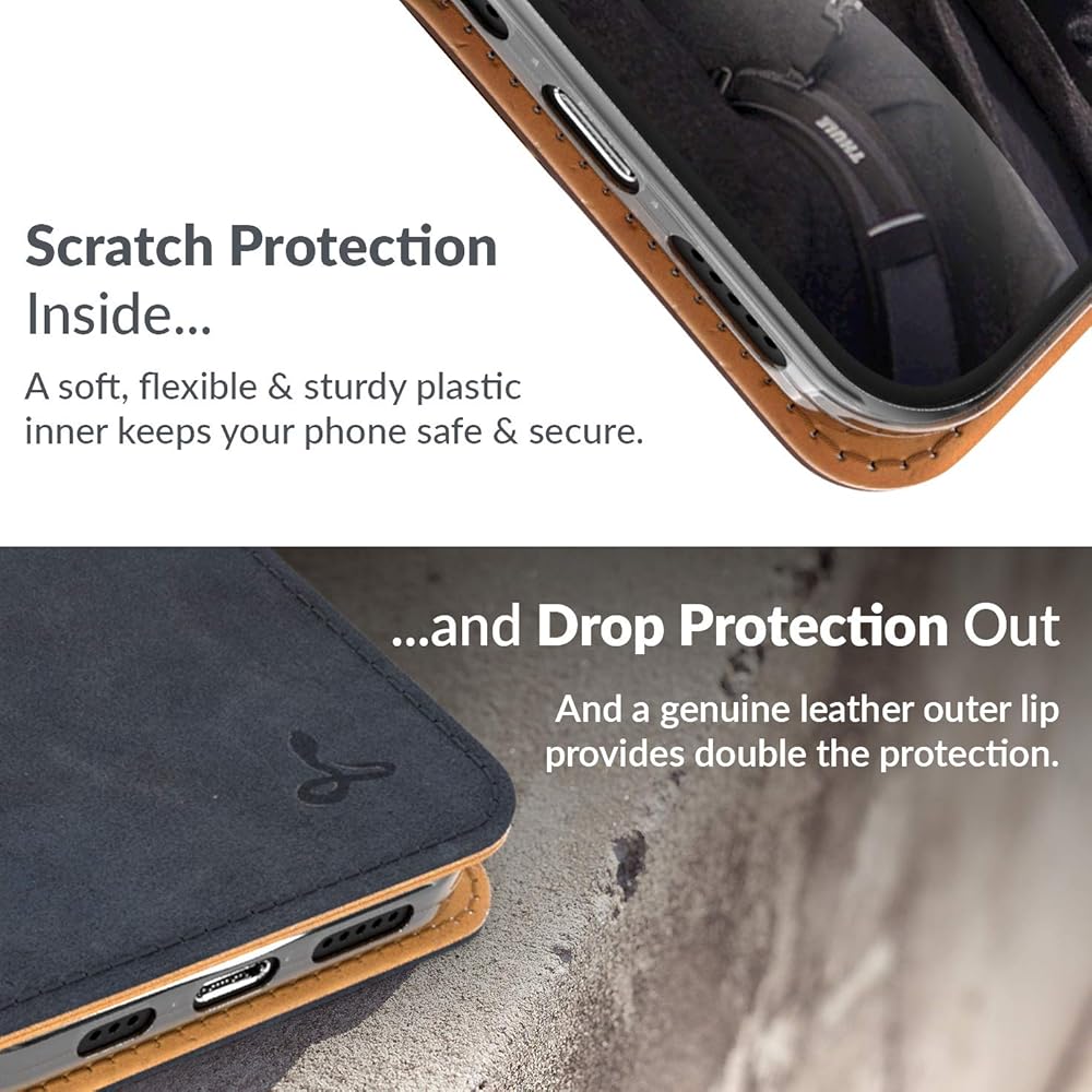 DROP, CAMERA & SCRATCH PROTECTION: At Snakehive we value your phone as much as you do. That's why our Vintage leather case features a leather outer lip and flexible inner providing extra protection for your Phone. Our leather wallet also features a uniquely designed, raised phone casing, which protects your camera lens from damage or scratches