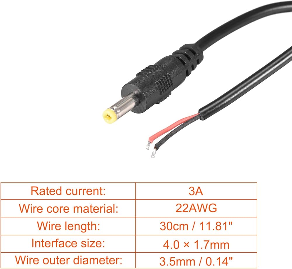 • 2-[Perfect Size]: Rated current: 3A; Wire core material: 22AWG; Wire length: 30cm / 11.81inch; Interface size: 4.0 × 1.7mm / 0.16 × 0.07inch; Wire outer diameter: 3.5mm / 0.14inch.