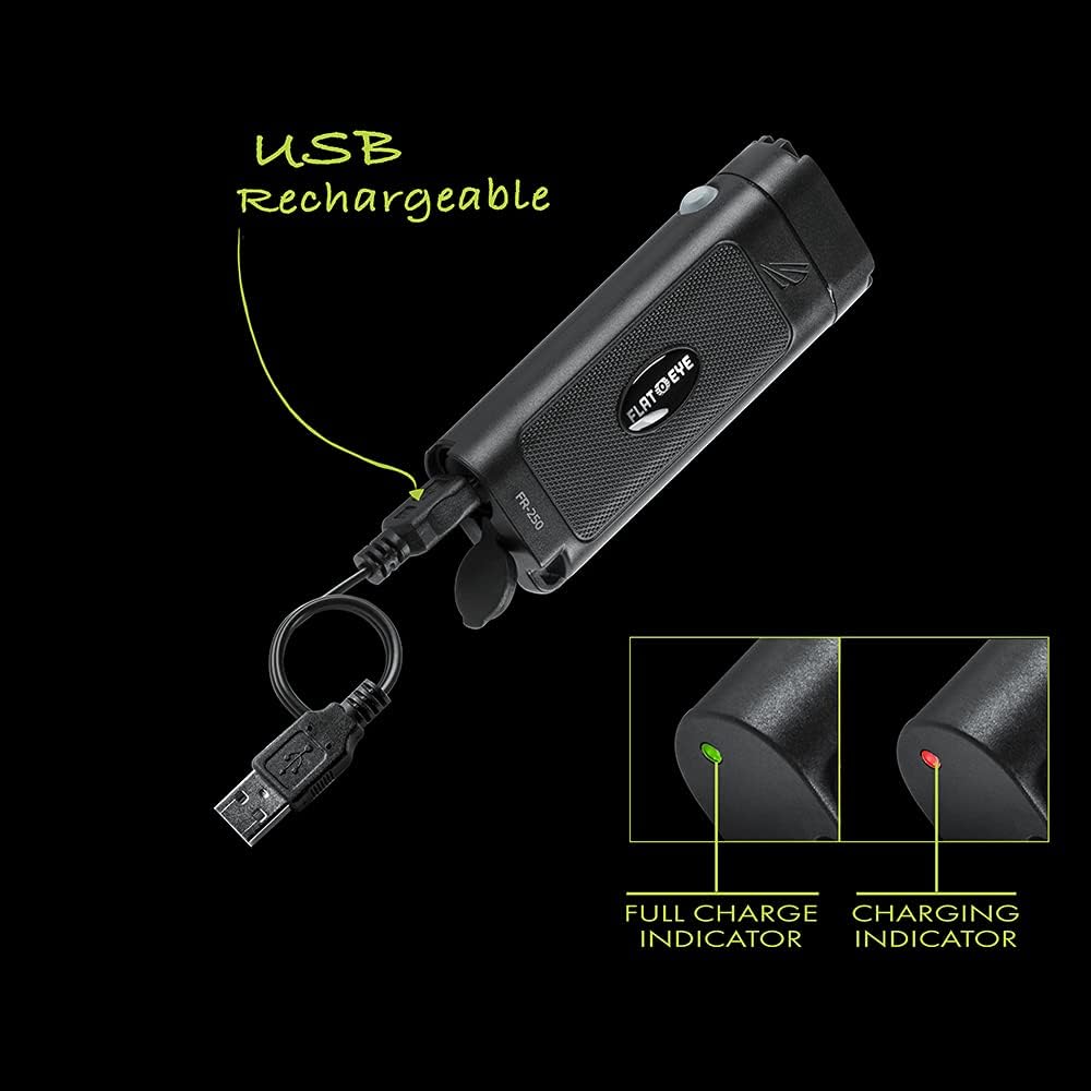 Panther Vision's newest 250 lumen LED FLATEYE flashlight encased in a patented UNROUND pistol grip, making it incredibly easy to hold, fit in your pocket and the perfect flashlight for all your everyday needs. FLATEYE flashlights are purposely engineered to exacting standards and crafted from aircraft grade aluminum and tactical polymer for lasting durability. They are waterproof and feature shockproof LED's for unsurpassed performance. With a choice of 2 models ranging from 150 lumens to 250 lumens, featuring a rechargeable battery with high, medium and low settings, you can get the right light and battery life for your every need. Join the UNROUND revolution and never see flashlights the same again.