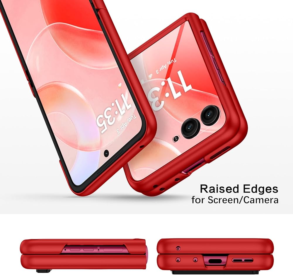 • 【Screen & Camera Protection】: Raised bezel edges offer protection for the screen and camera against scratches, while the raised lips keep the screen and camera off of flat surfaces. Designed to protect the screen and camera for your Motorola Razr Plus 2024.