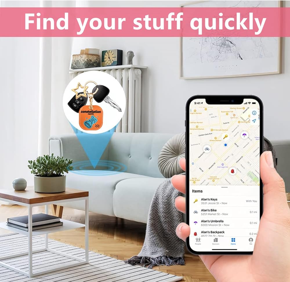 High-quality:Our AirTag keychain is made of high-quality PU leather, with a soft leather that is resistant to splashing, scratching, and skidding, protecting the air tag from impact, falling, and scratching.This airtag case has patterns on both sides, and the Constellation elements are very cute,It fits so perfect for AirTag and one wouldn't even know because it looks like a regular key chain