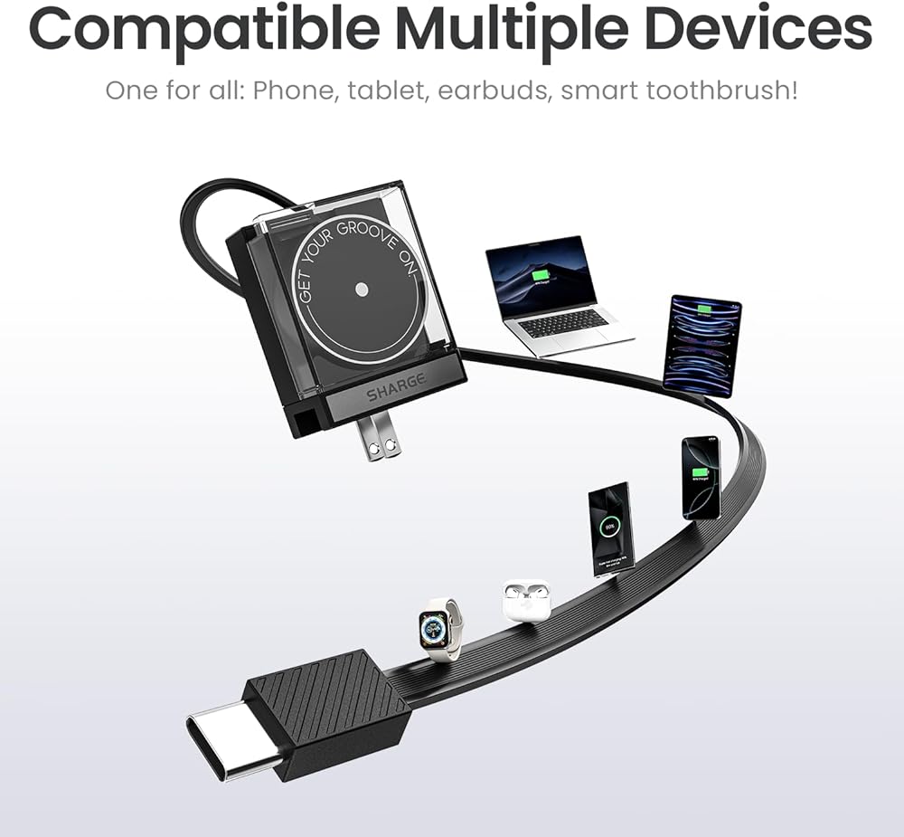 Portable for Your Every Journey: It includes a wall charger and USB C charging cable into one sleek device. Simplify your travel and lighten your load