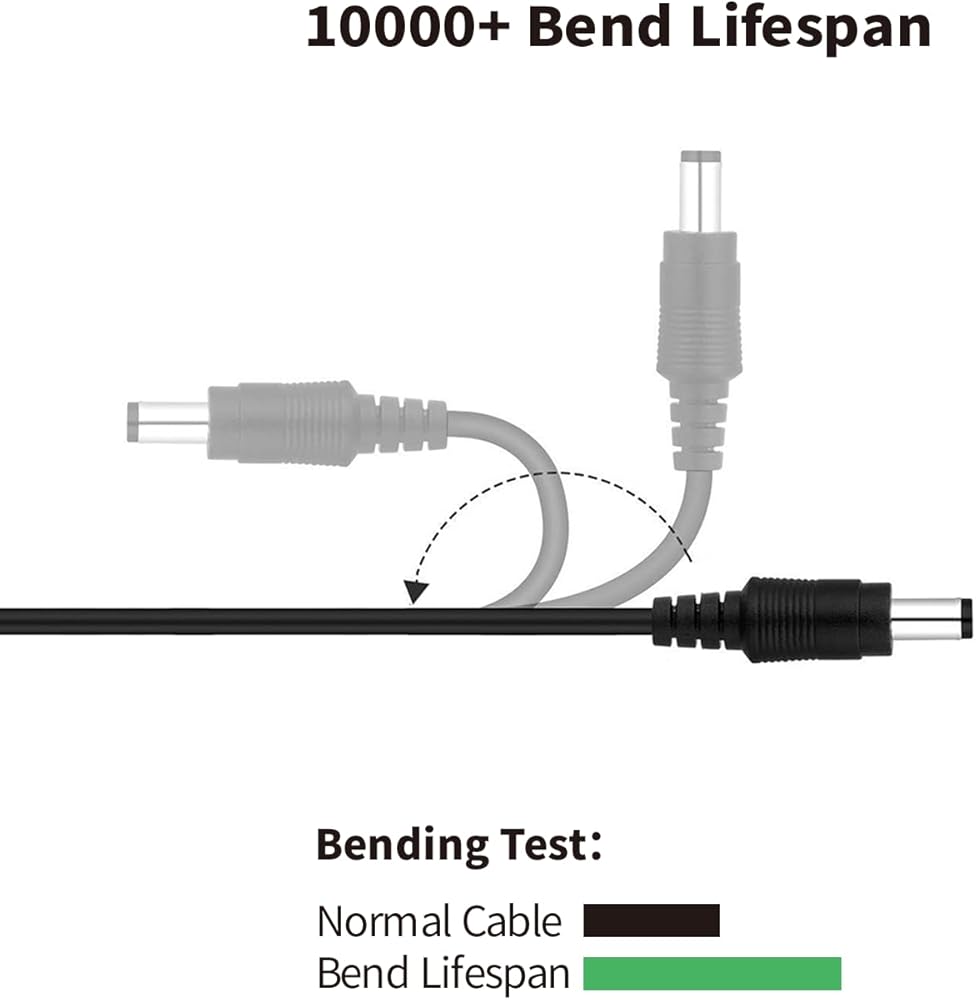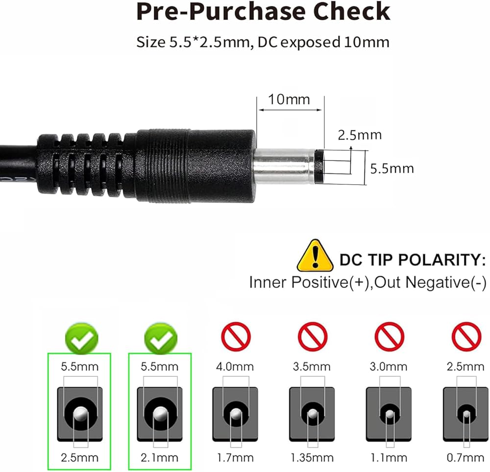 [Easy to Use] The adapter features a standard US plug and a 5.5mm x 2.1mm & 2.5mm connector, ensuring a hassle-free plug-and-play setup for your devices.