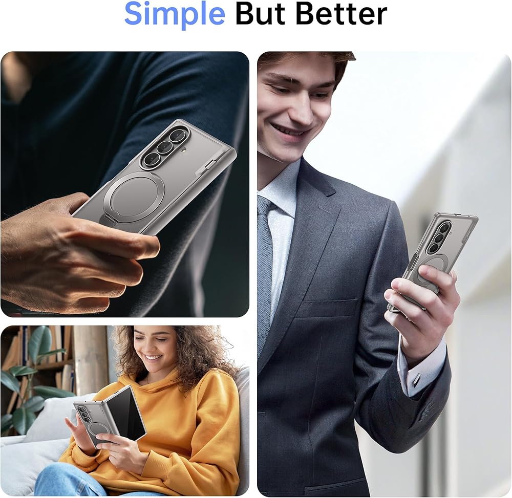 [Compatible with MagSafe]: Galaxy Z Fold 6 Magnetic Case Built-in 38 pcs N52SH strong magnets enable compatibility with all magnetic accessories, including magnetic wireless charger, card holder, car phone mount, and ring holder/stand etc, bringing your phone into the world of magnetic accessory options. Note: Due to Hinge design issues, Some accessories may not be able to charge when your phone fully opened