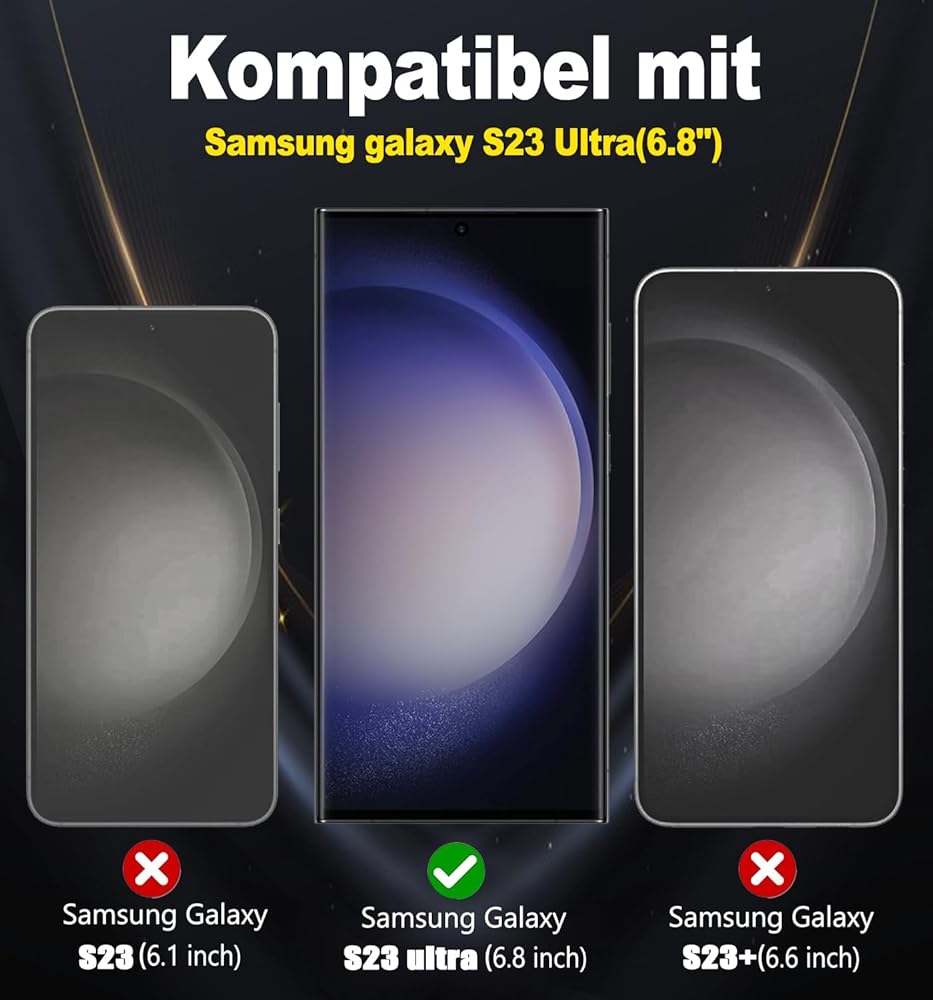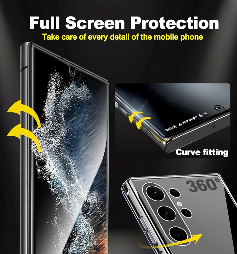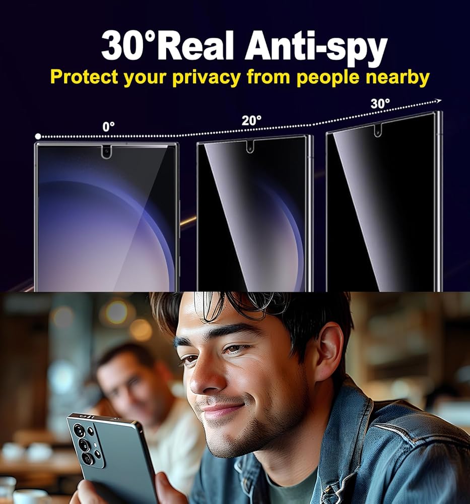 【3+1 Comprehensive Protection】Offering easy installation that preserves your phone's sleek look while providing comprehensive safeguarding. We have full confidence in our screen protectors and take full responsibility for any quality issues. This includes 24/7 attentive customer service, 2 packs for Samsung Galaxy S23 Ultra privacy screen protectors, a smart installation kit, and a scratch-resistant phone case. Please read the instructions carefully before installation.
