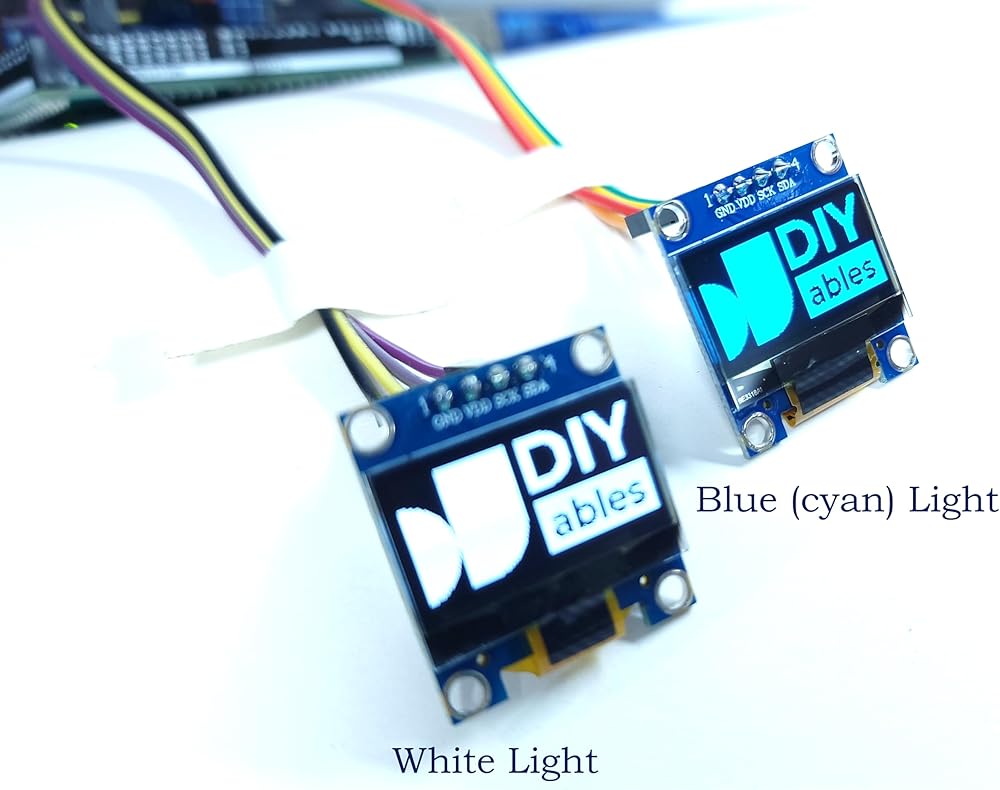 0.96 Inch OLED Display I2C Module, 128x64, 2-Pack (1 Blue + 1 White), SSD1306 Driver – Compatible with Arduino, ESP32, ESP8266, Raspberry Pi