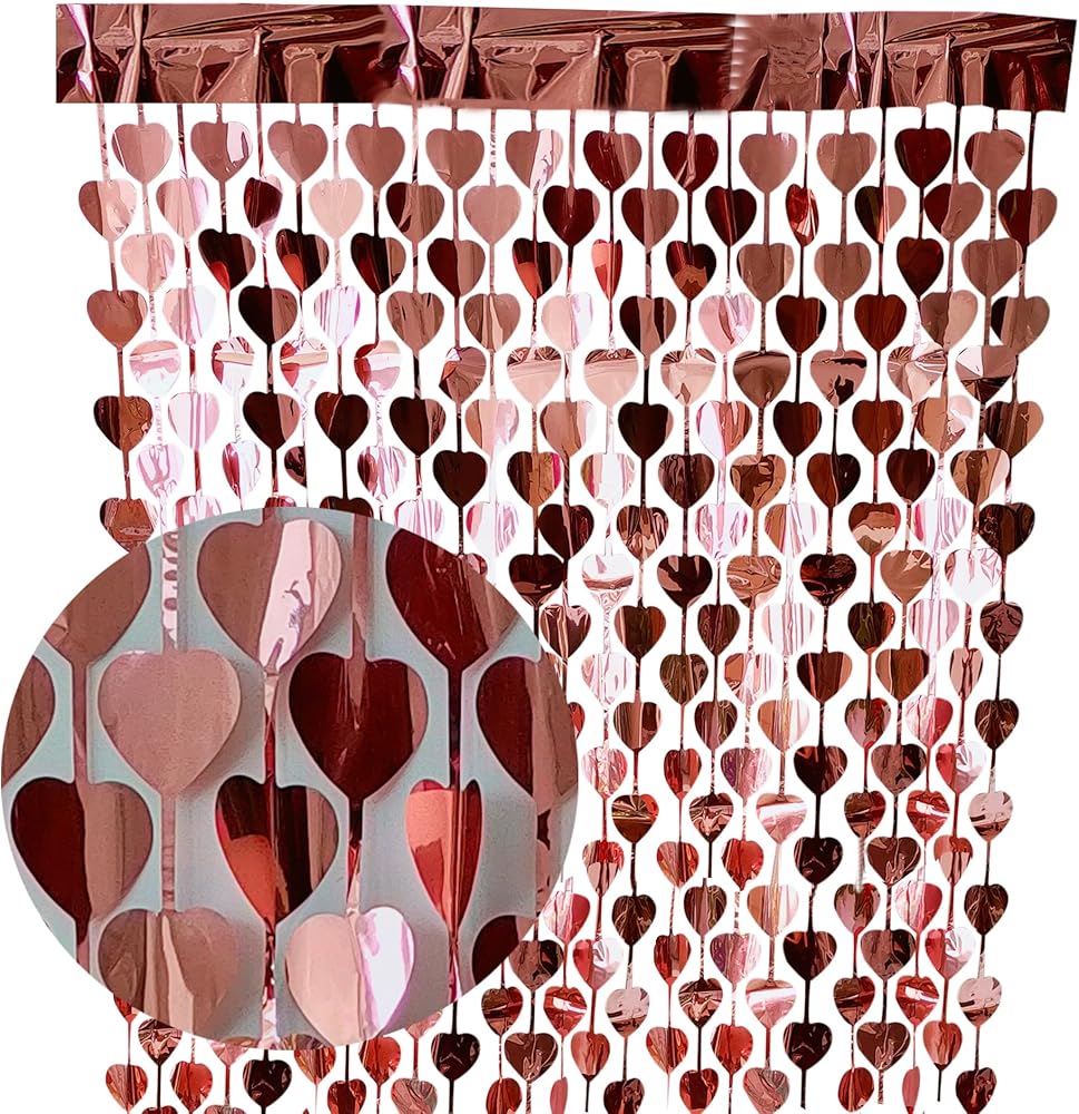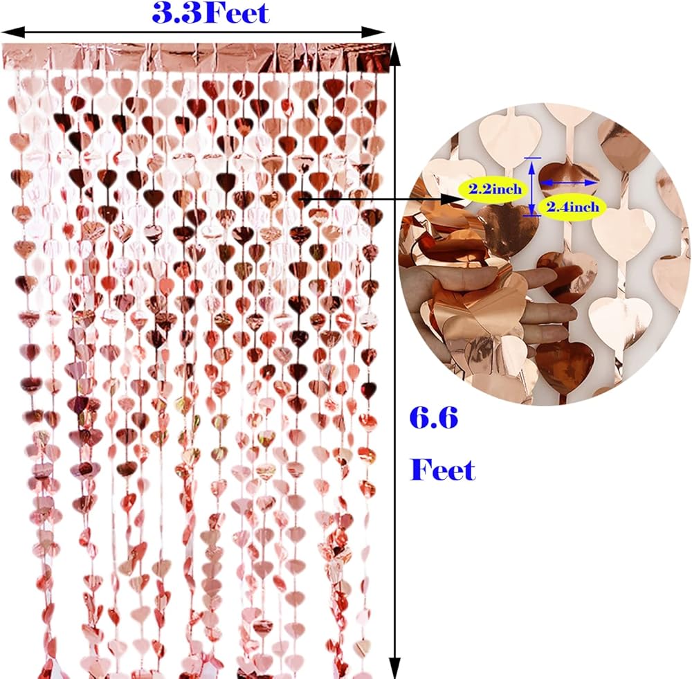 Prudance 2Pcs Rose Gold Heart Foil Fringe Curtain,Sequin Love Heart Curtain Photo Backdrop Props Suitable for Birthday Party Valentine's Day Bachelorette Engagement Wedding Decor.(3.3 x 6.6 Ft)
