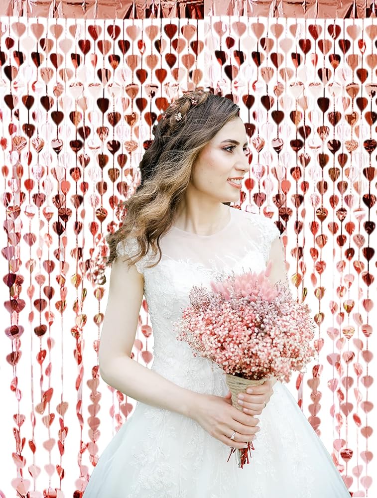 3、Easy To Use: Our products come with double-sided tape, which can be easily used in just three steps. 1: first open the package and unfold the heart curtain;2: Peel off the double-sided tape on the back; 3:Stick the foil tassel heart curtains where you want them to be, such as on door frames, windows, and party backdrops decoration.