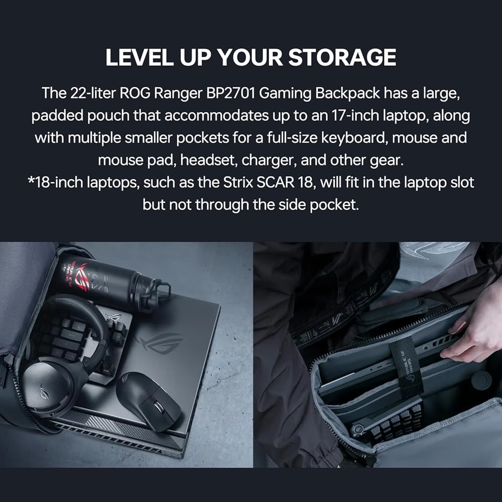 [Spacious storage] 22-liter capacity, with a quick access zipper and room for up to a 17” notebook.