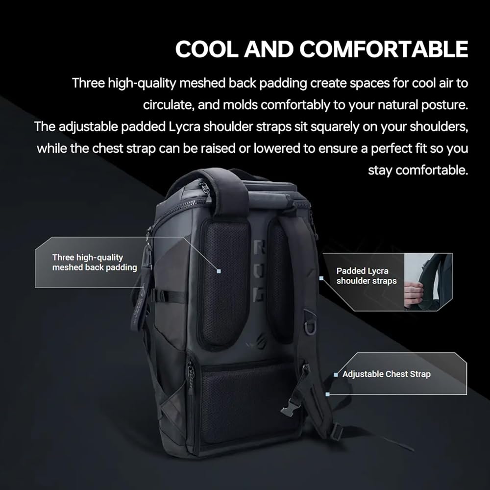 [Cool and Comfortable] Three high-quality meshed back padding create spaces for cool air to circulate, and molds comfortably to your natural posture. The adjustable padded Lycra shoulder straps sit squarely on your shoulders, while the chest strap can be raised or lowered to ensure a perfect fit so you stay comfortable.