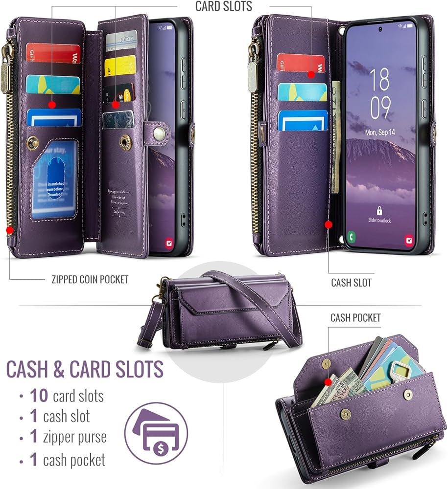 【Card Slots & Cash Slots & Zipper】: This case includes 10 card slots + 1 cash slots + 1 zipper purse + 1 cash pocket,hold your ID,credit cards,driver license,bills,coins,key and a little bit cash without problems,make your life and work more convenient.
