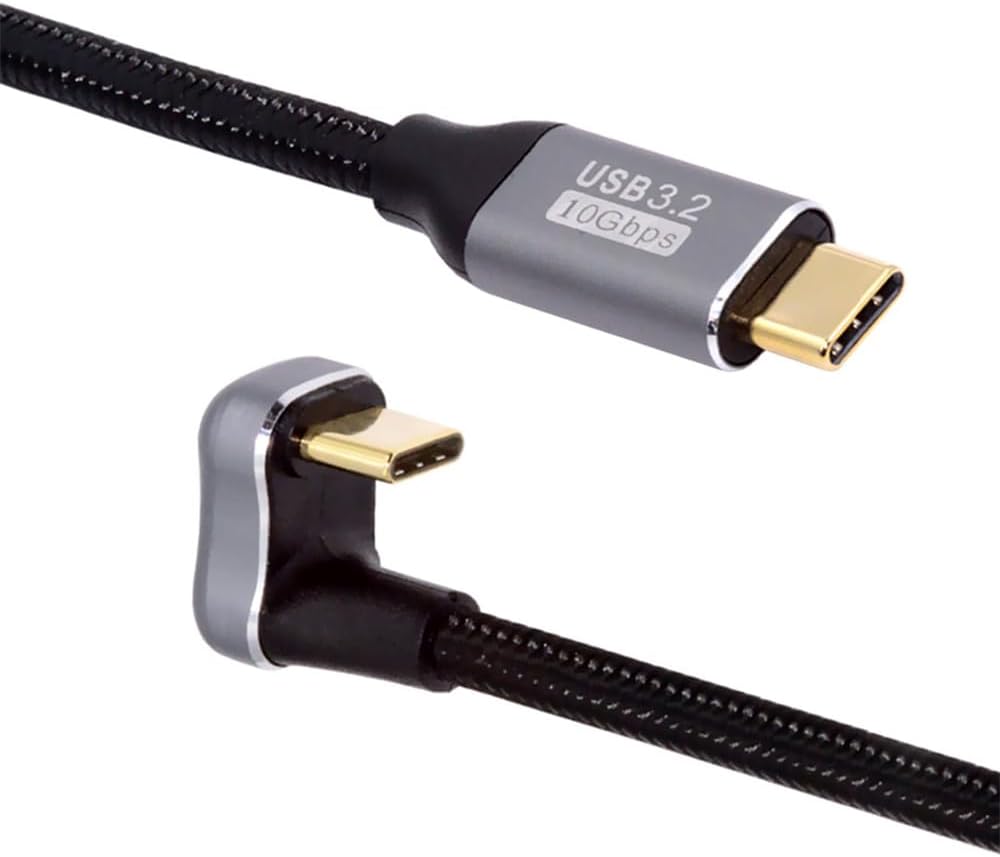 Opposite U Shape Back Angled USB-C USB 3.1 Type C Male to Male Extension Data Cable 10Gbps 100W with Sleeve