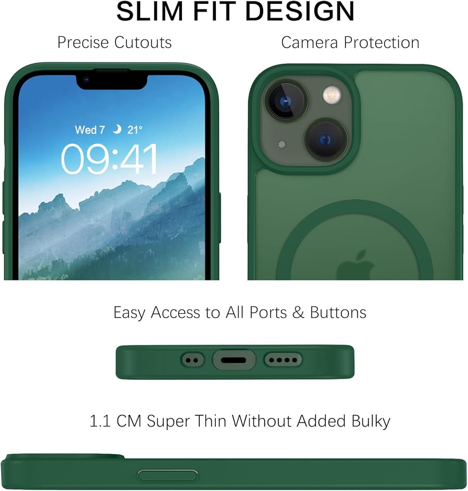 BENTOBEN Magnetic for iPhone 13 Mini Case/iPhone 12 Mini Case, [Compatible with MagSafe] Translucent Frosted Slim Shockproof Women Men Protective Case Cover for iPhone 13 Mini/12 Mini 5.4",Dark Green