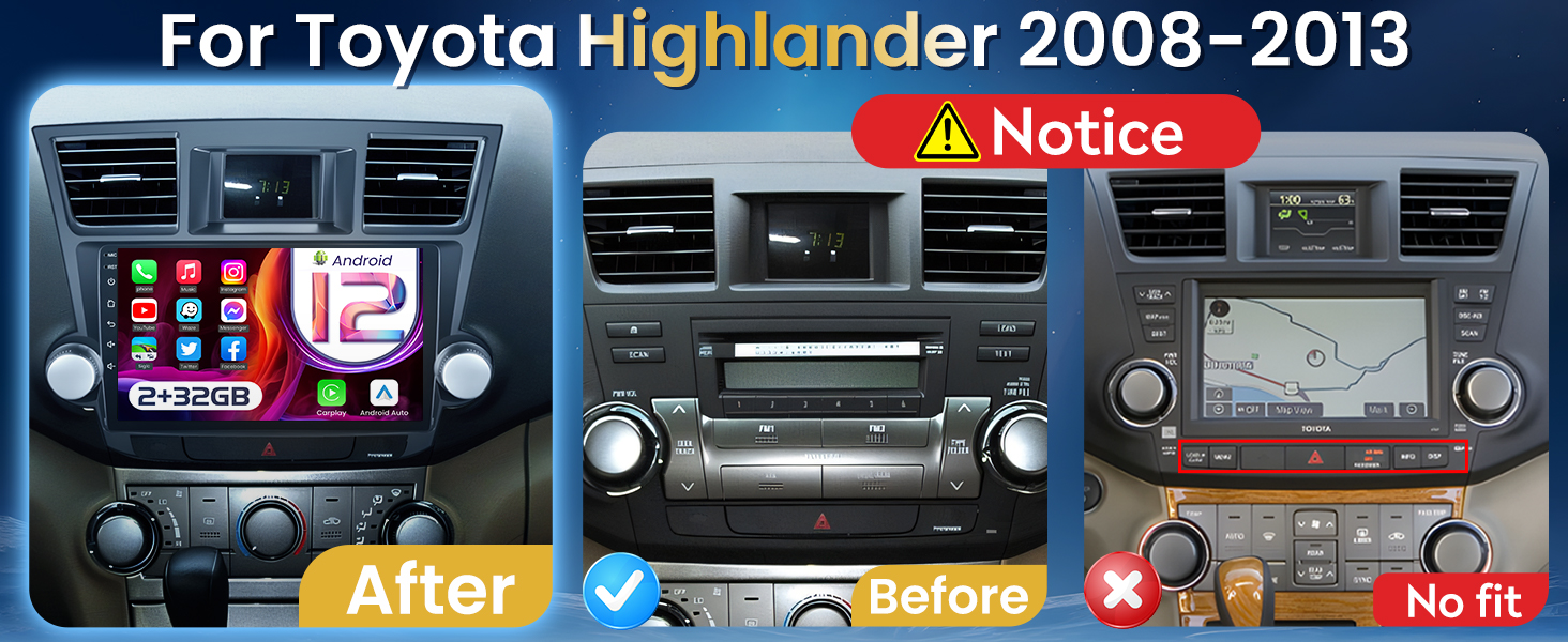 【 CarPlay and Android Auto】 The radio for 2008 Highlander supports wireless and wired CarPlay/Android Auto connection, providing excellent voice-assisted control. You can use Siri or Google to help you make calls hands-free, and easily get mobile phone contacts, emails, notifications, map navigation, music, videos, etc. Free your hands while ensuring your driving safety.
