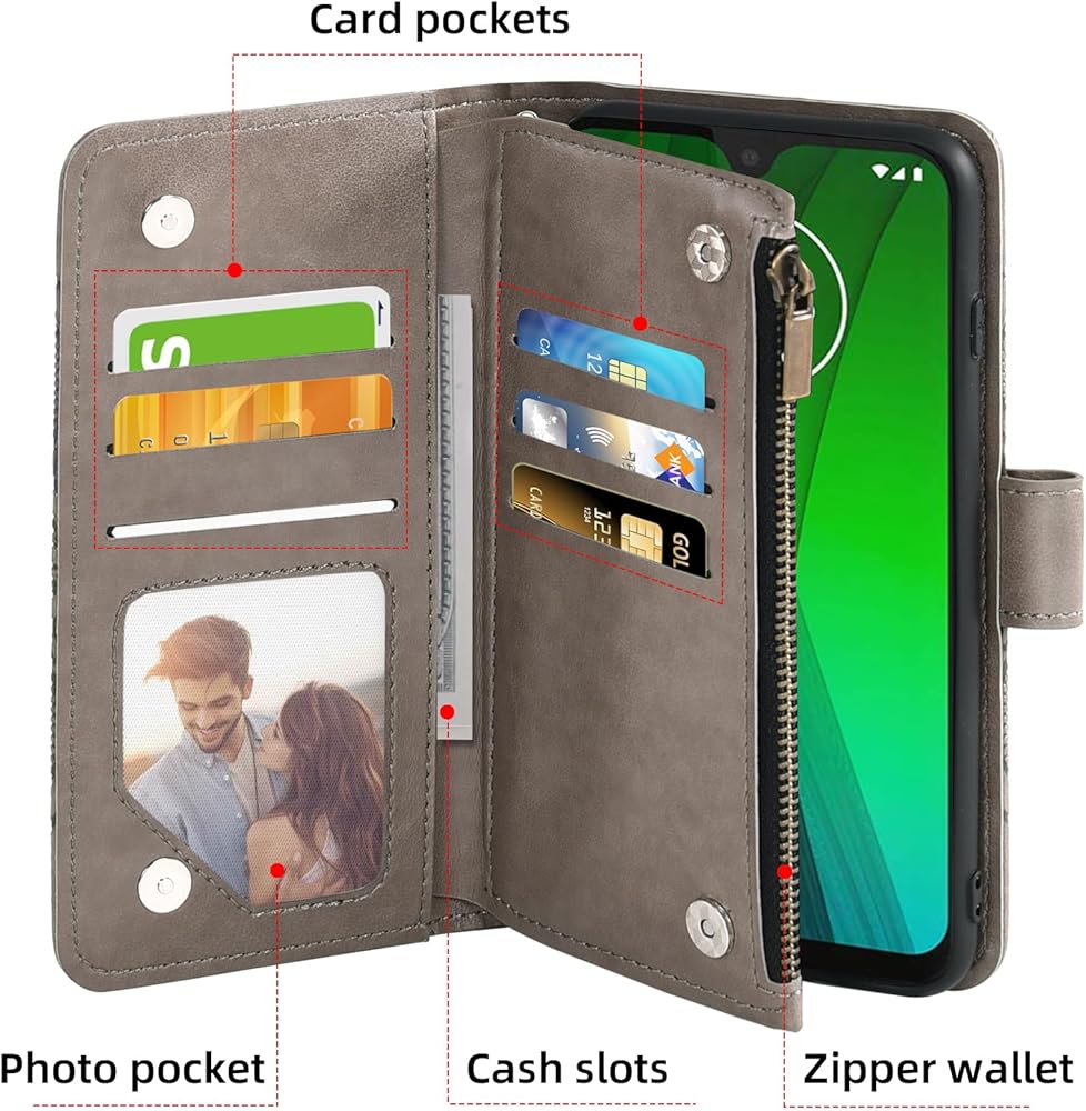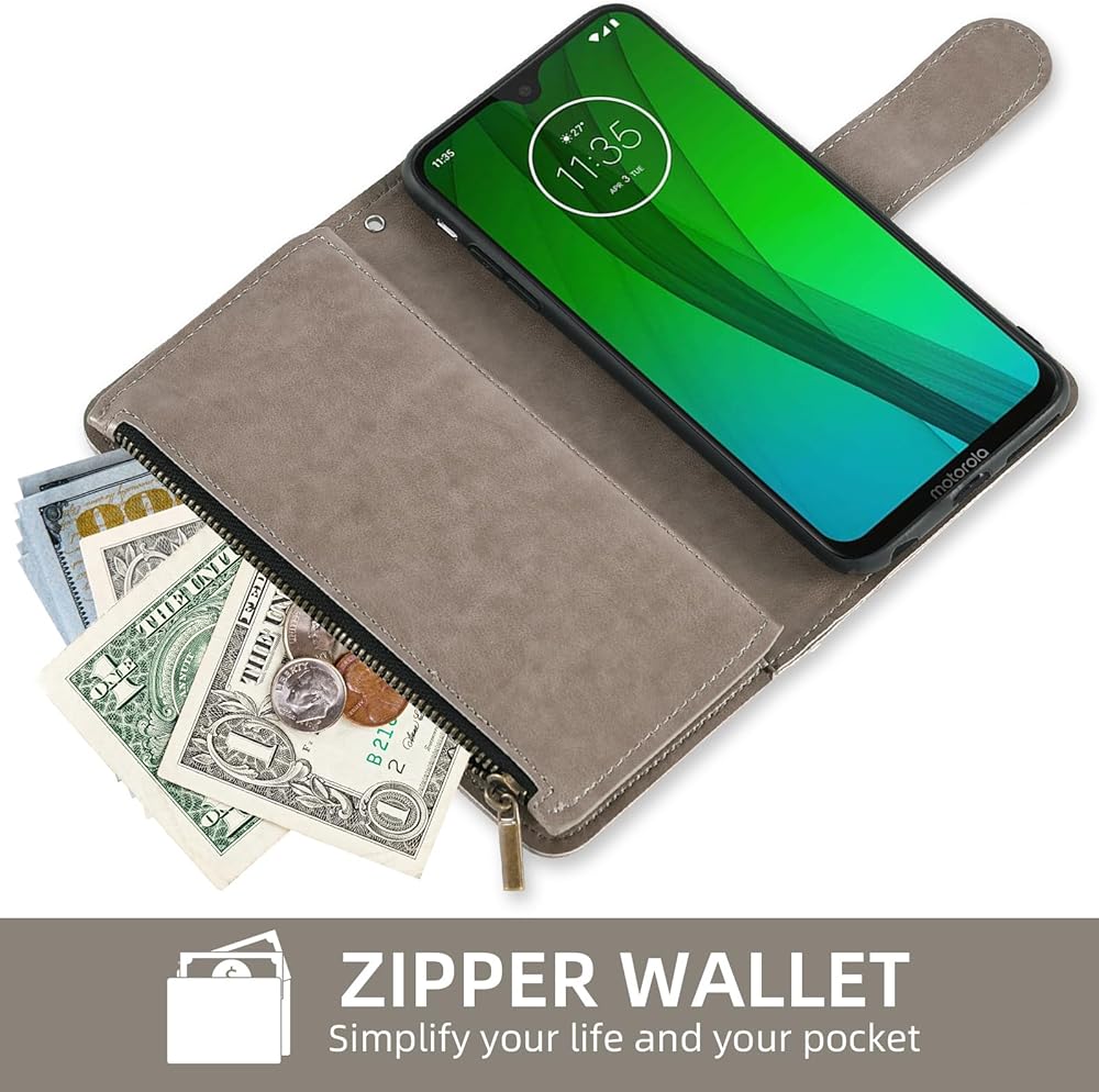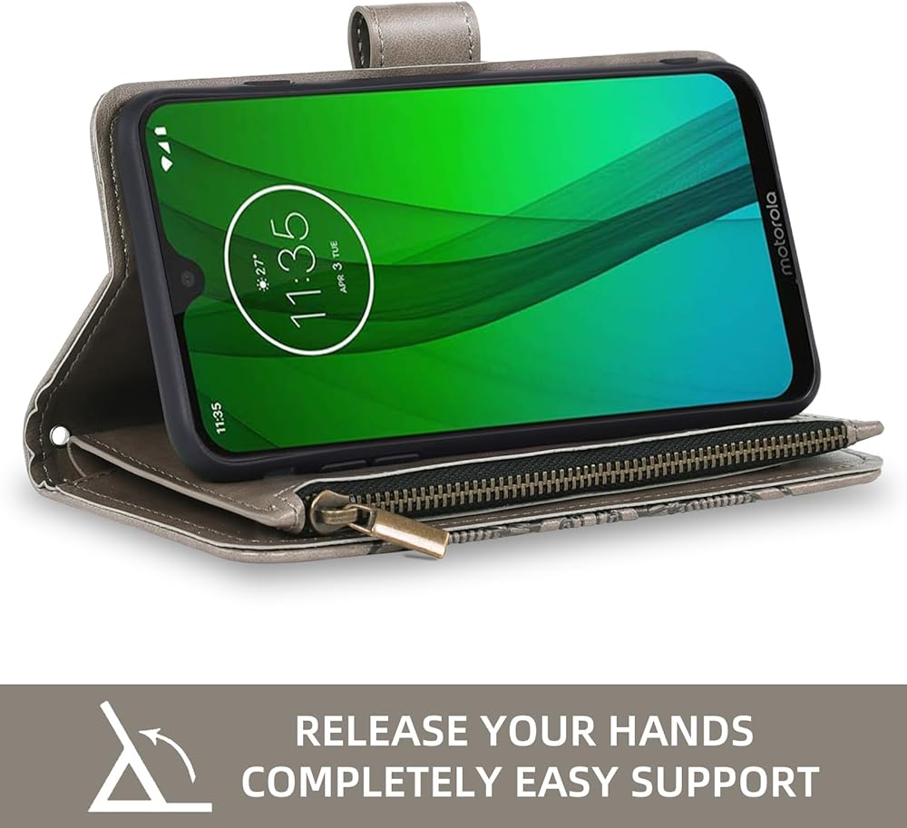 Asuwish Phone Case for Moto G7/G7+/Revvlry Plus Wallet Cover with Tempered Glass Screen Protector and Flip Card Holder Stand Cell Motorola G7Plus Moto7 XT1962-1 G 7 7G Tmobile Revvlry+6 Women Men Grey