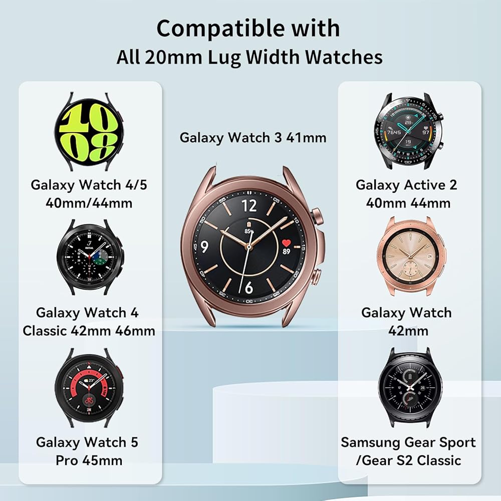 【Compatibile with All 20mm Watch Bands】ELUTENG 6 pack stretchy braided nylon straps are widely compatible with Samsung Galaxy Watch 7/6/5/4 44mm 40mm, with Galaxy Watch FE/6 Classic 47mm 43mm, with Galaxy Watch 5 Pro 45mm, with Galaxy Watch 4 Classic 46mm 42mm, with Galaxy Watch Active 2 44mm 40mm/Active/Galaxy Watch 3 41mm/Gear Sport/Gear S2/S2 Classic, also fit for Garmin Vivoactive 4/3/HR/Garmin Forerunner 645/245/Garmin Venu, for Gizmo Watch and other watches with 20mm width lugs.