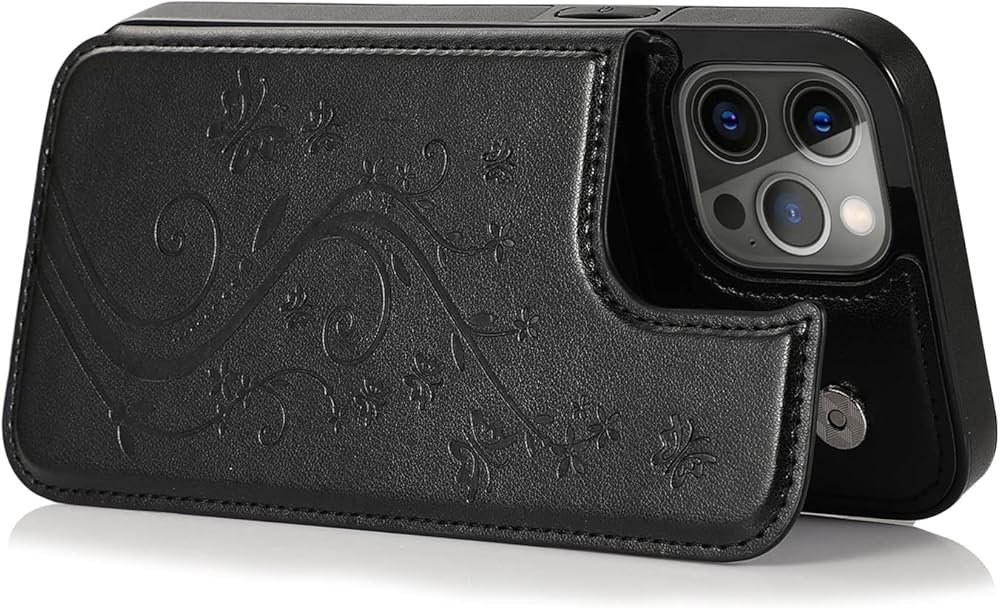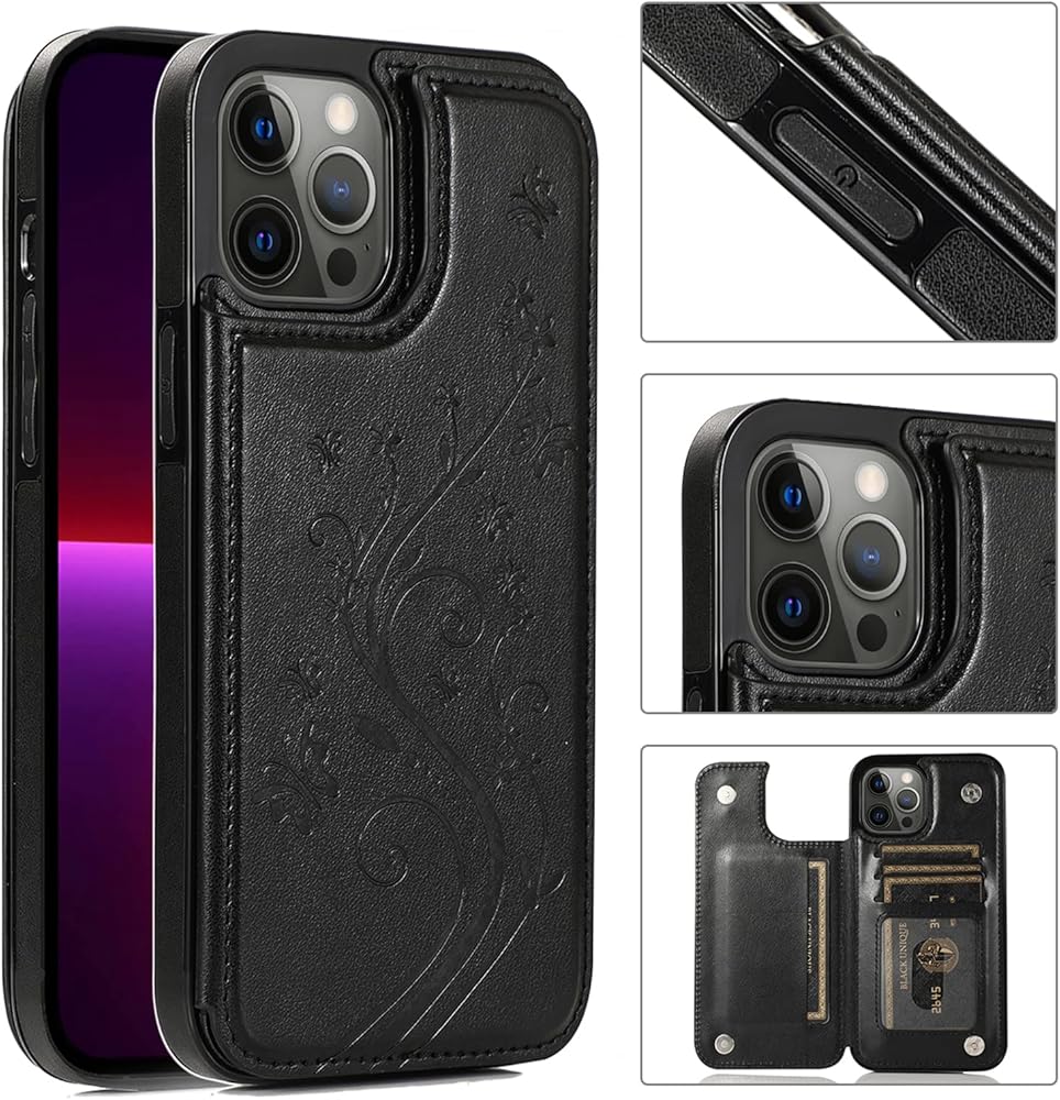 Phone Case for iPhone 13 Pro Max 2021 6.7 inch with Tempered Glass Screen Protector and Card Holder Wallet Cover Stand Flip Leather Cell iPhone13promax 5G i Phone13Max Plus iPhone13 ProMax Cases Black