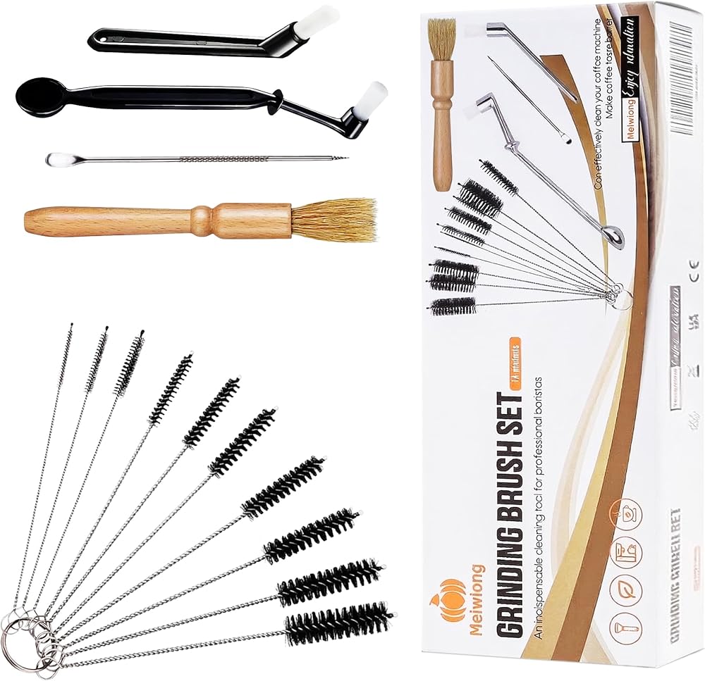 Easy to use : Espresso machine cleaning brush, easy to operate, can easily go to narrow places and prevent hot water from scalding hands, can clean coffee grinder burr blades and coffee residue, and can also effectively clean your coffee machine and make coffee more delicious.