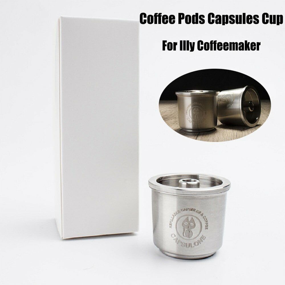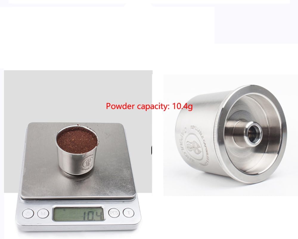 Stainless stteel reusable coffee capsule filter, equipped with spoon and brush, is reusable, refillable, easy to clean and use.