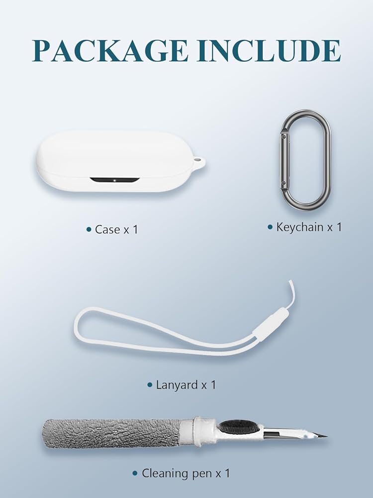 Warm Tips: Package include 1 x Silicone Case, 1 x Keychain/Carabiner,1 x Cleaning pen,1 x Lanyard(NOT INCLUDE EARBUDS). We take care of all quality-related issues with a REPLACEMENT, so if you have any problem, please contact us without hesitation.