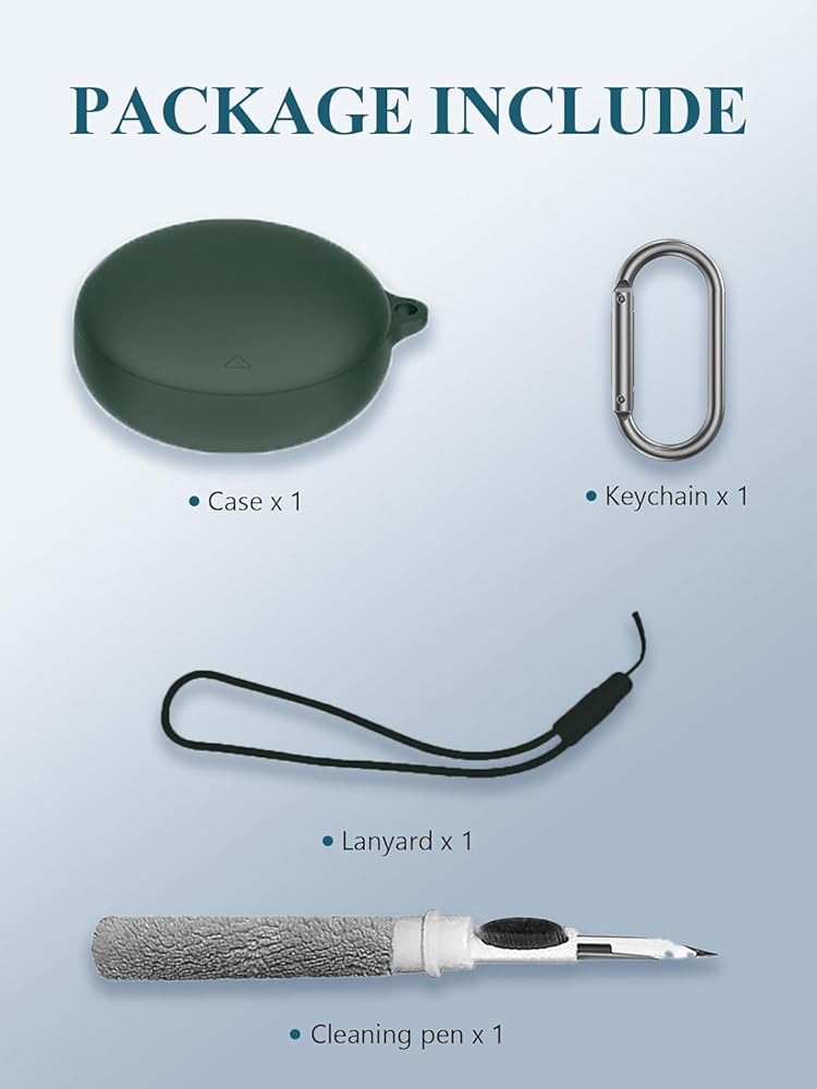 Warm Tips: Package include 1 x Silicone Case, 1 x Keychain/Carabiner,1 x Cleaning pen,1 x Lanyard(NOT INCLUDE EARBUDS). We take care of all quality-related issues with a REPLACEMENT, so if you have any problem, please contact us without hesitation.