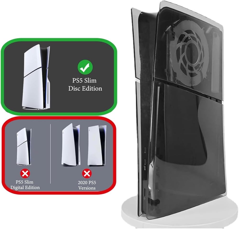 Transparent Cover Plates for PS5 Slim Console Disc Edition Faceplate Clear Replacement Shell (Transparency Black)