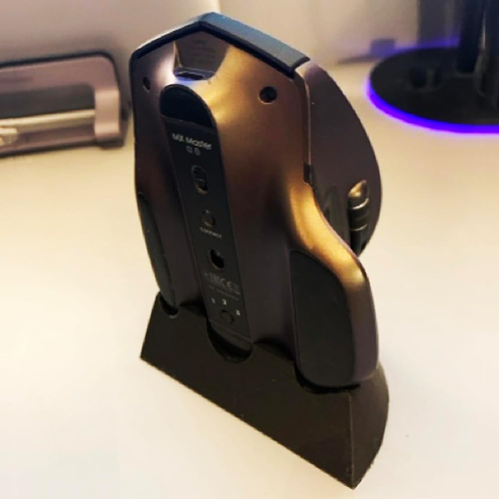 This mouse stand has a USB slot and is equipped with non-slip adhesive, only compatible with Logitech MX Master 2S, it can easily organize your wireless mouse and receiver, suitable for use on a desk at home or in the office to solve your storage needs.