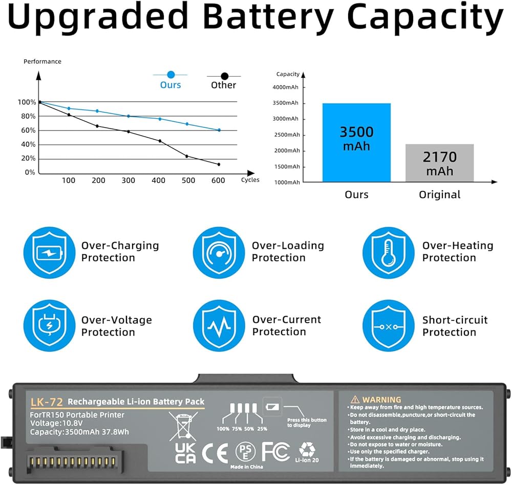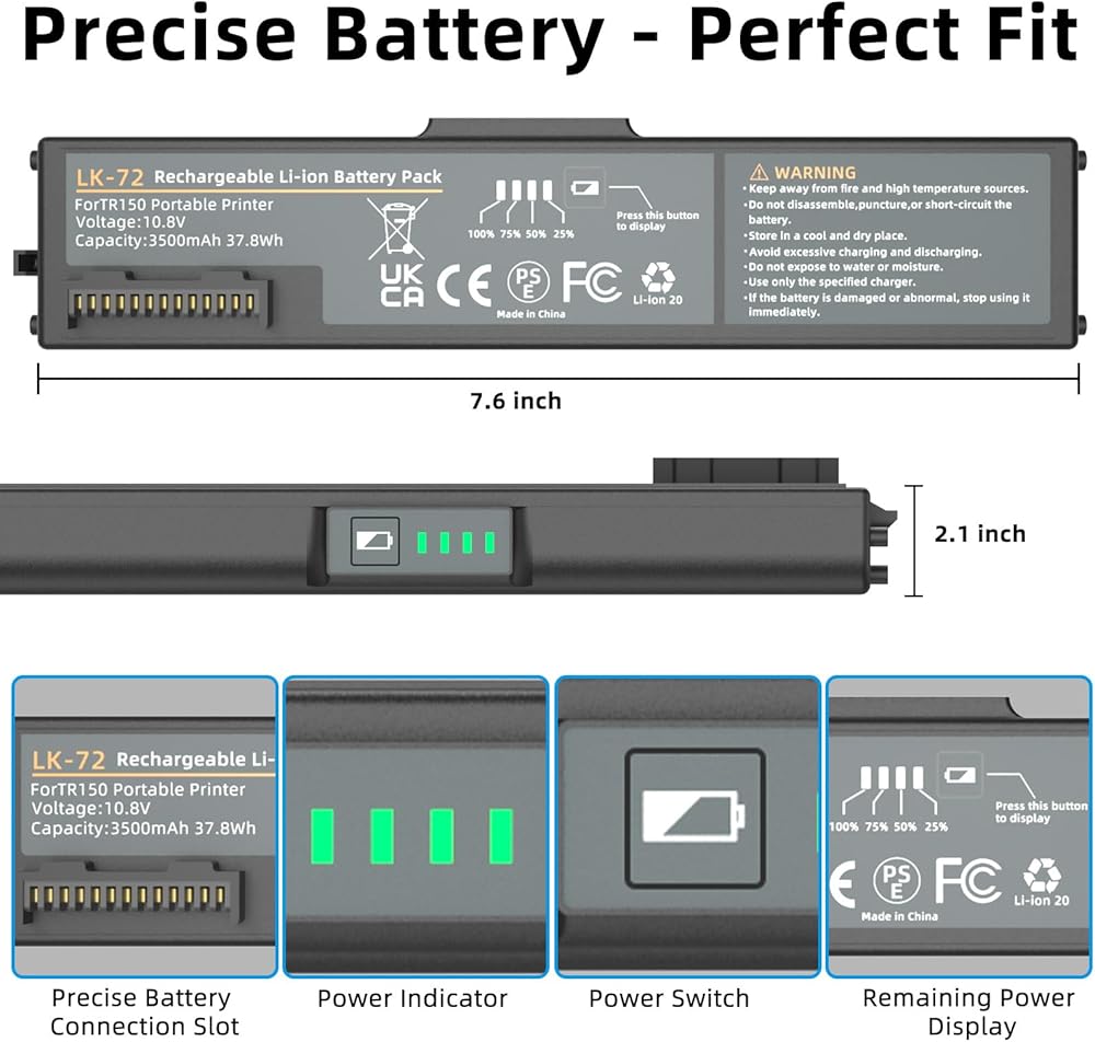 Compatible with PIXMA TR150 Wireless Portable Printer (Pefect Replacement Battery for Canon LK-72 Battery Pack)