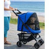 Pet Gear No-Zip Happy Trails Pet Stroller for Cats/Dogs, Zipperless Entry, Easy Fold with Removable Liner, Safety Tether, Storage Basket + Cup Holder, Cobalt