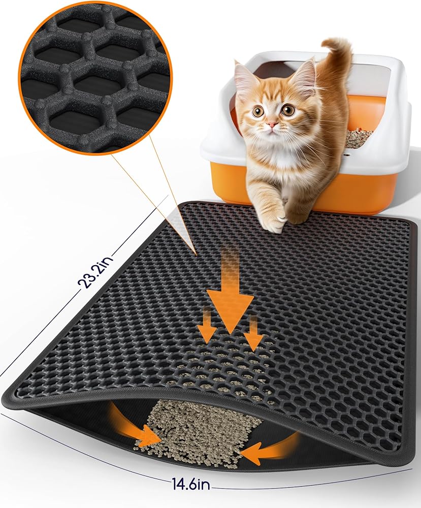 Cat Litter Mat - 23.2" x 14.6" Small Litter Box Mat with Double Layers, Urine-Proof and Non-Slip Litter Trapping Mat, Easy to Clean Kitty Litter Mats for Floor, Scatter Control, Black