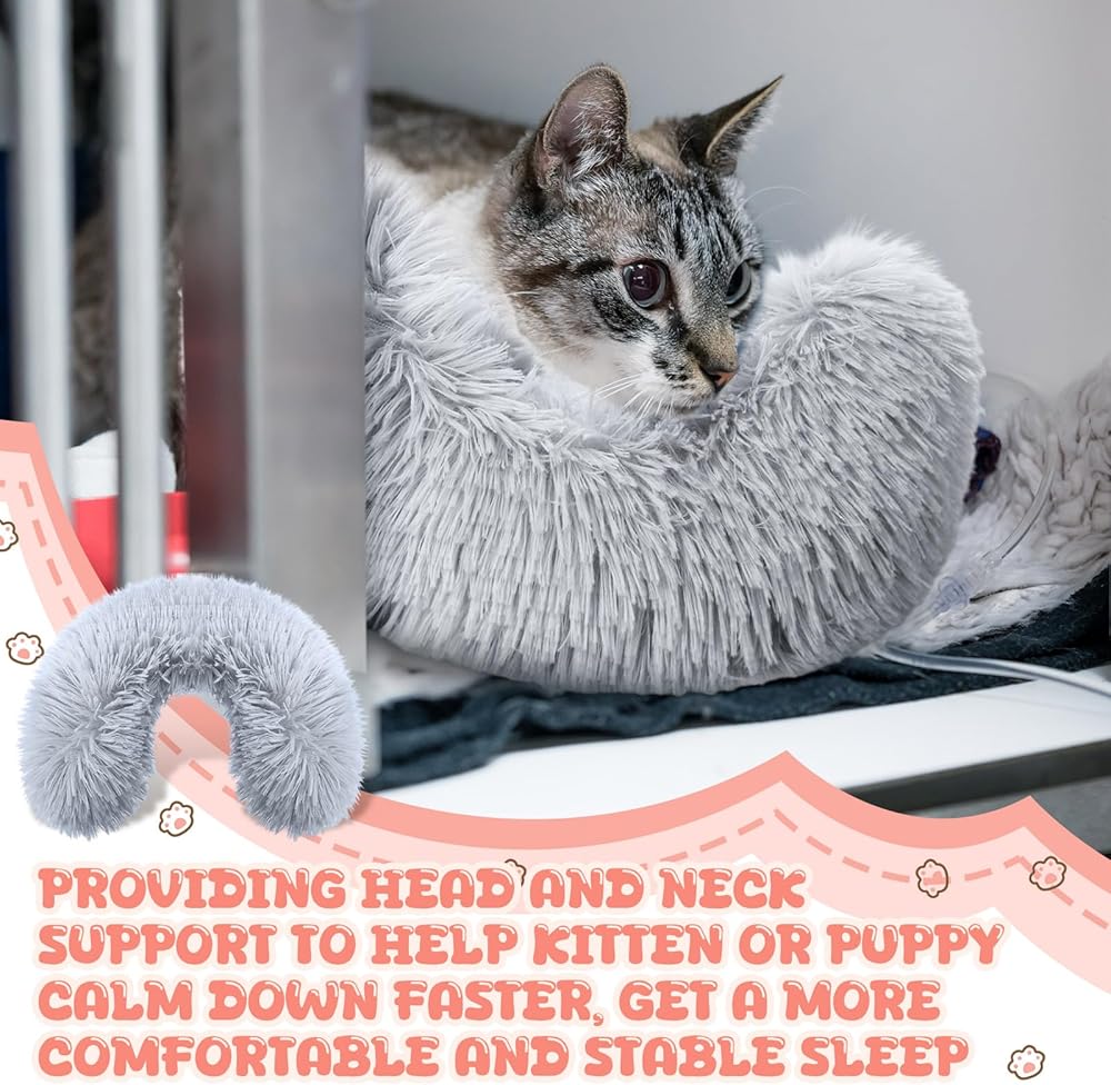 Featuring long shaggy faux fur for enhanced snuggling and burrowing comfort. The soft material makes your little pet feel surrounded by warmth, allowing them to experience restful sleep for improved behavior and better health. The anti anxiety cat pillow provides a full sense of security for your pet. The neck protector pillows are lightweight and easy to carry, which will not bring much burden on you. Besides, they are also easy to store without occupying much space.